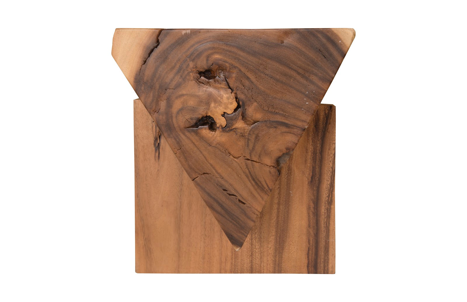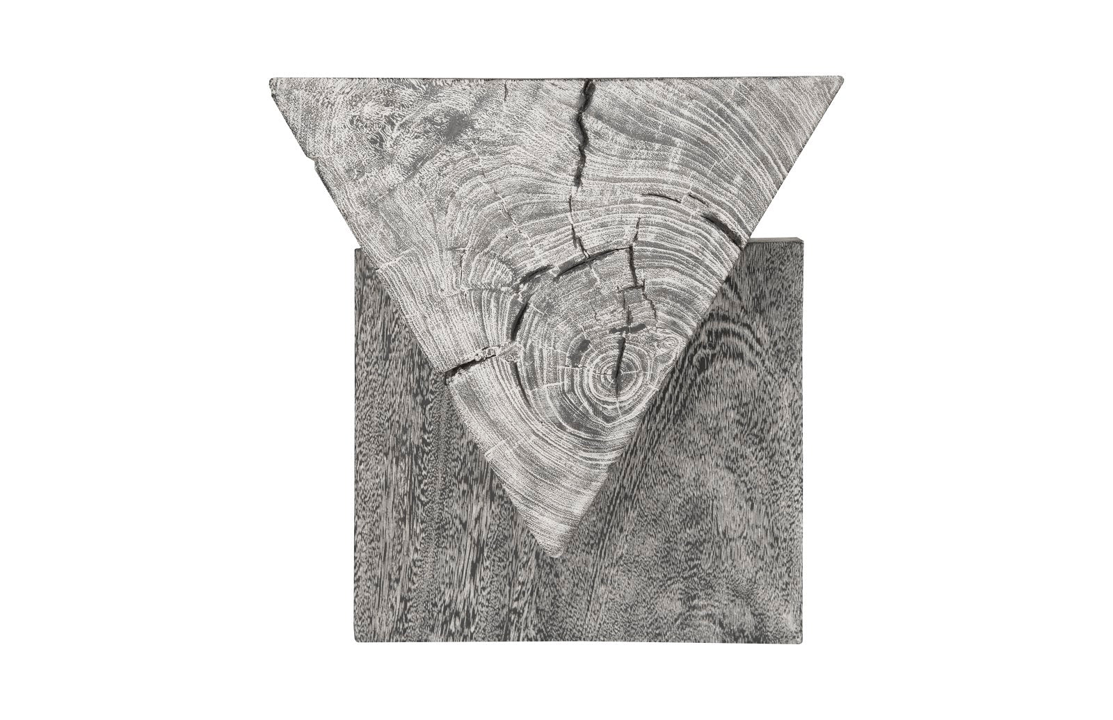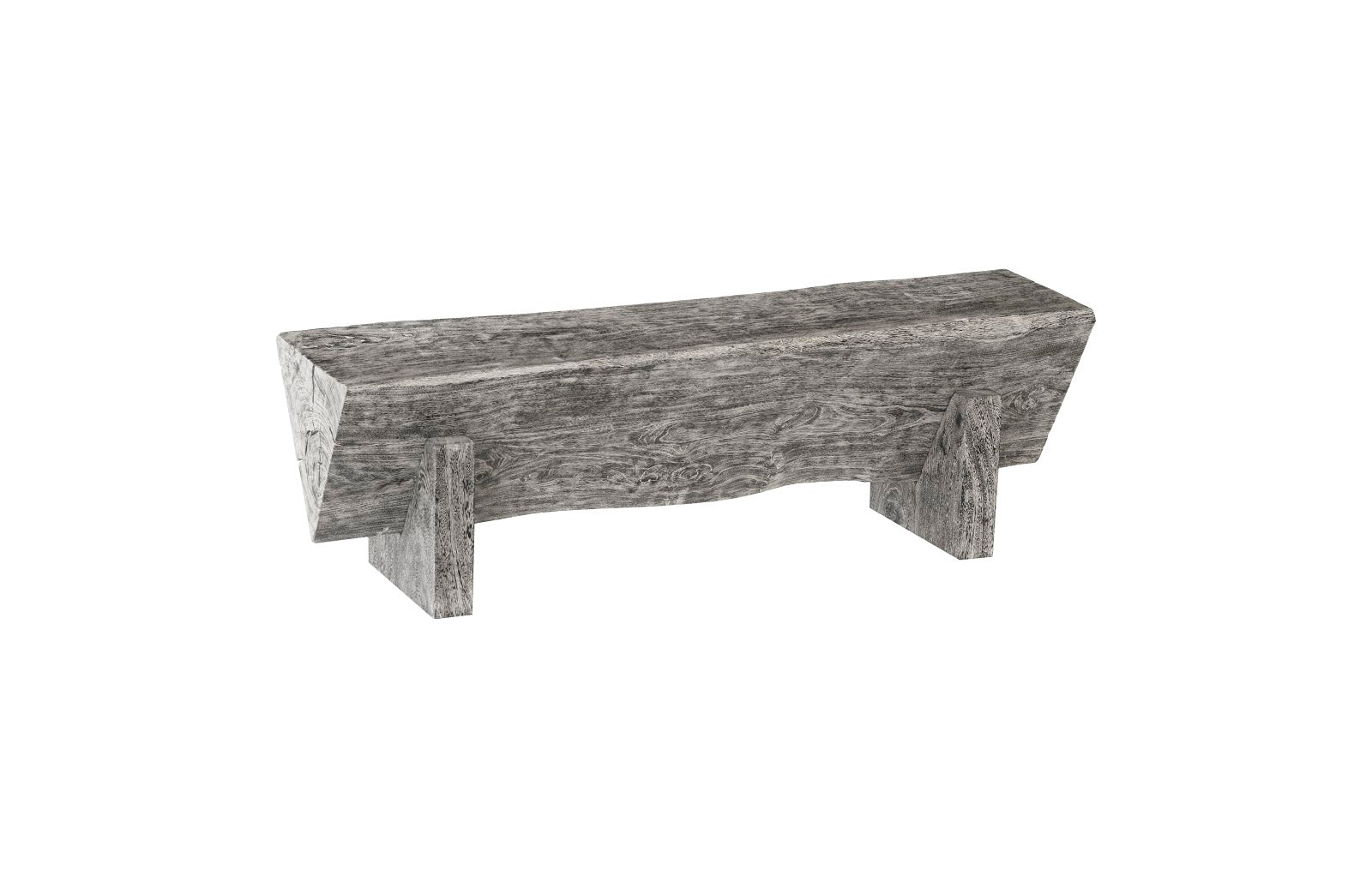 Crafted from solid Chamcha wood, the Triangle Bench rests sturdily on two wood legs without the need for any hardware. Available in Natural and Grey Stone.
