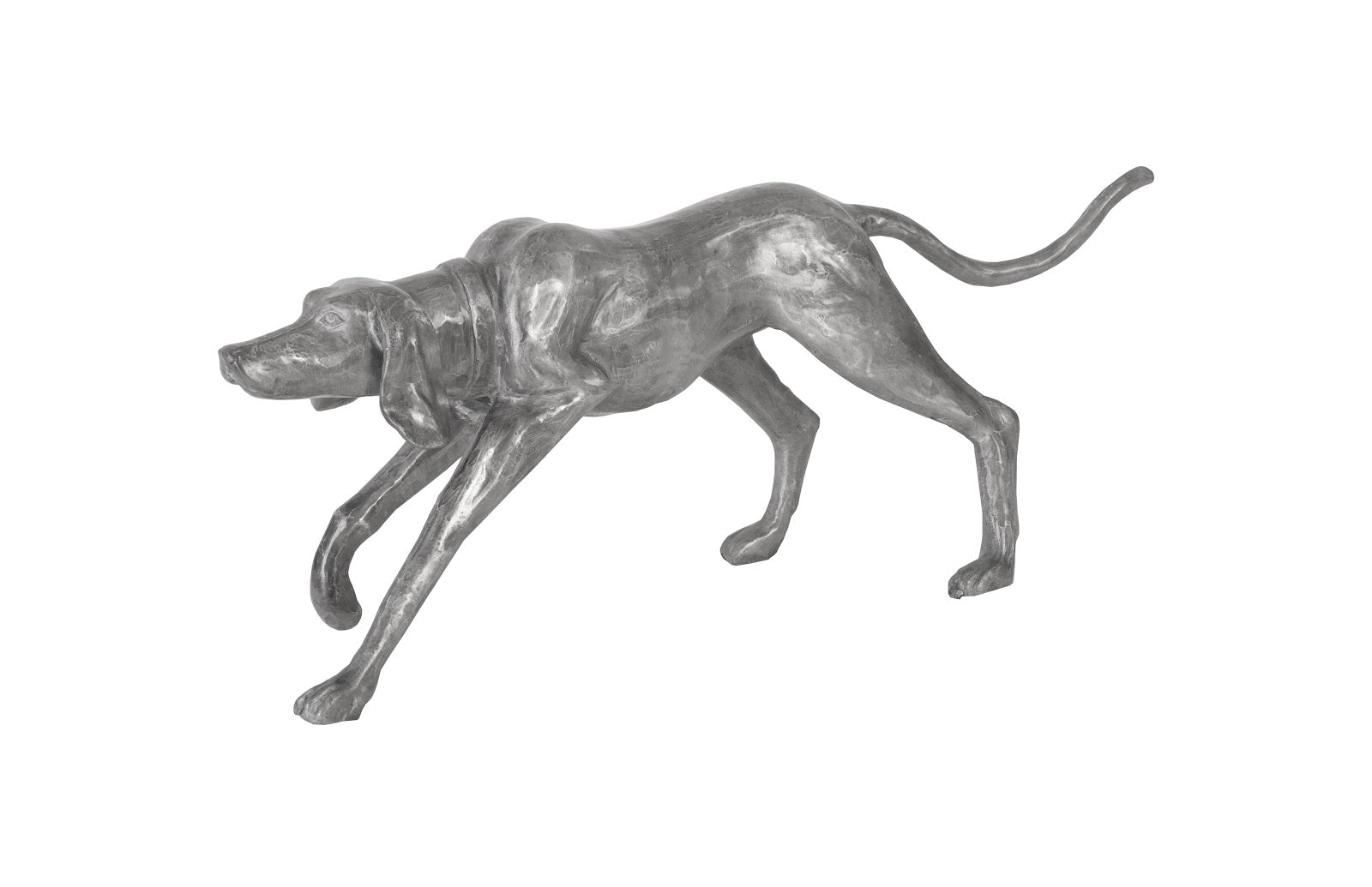 The fact that it is both playful and powerful makes our Walking Dog Sculpture a paradoxical decorative sculpture. Ears flapping and expression attentive, it’s man’s best friend without the hassle of maintenance! A true artisanal piece, the decorative dog sculpture is made of aluminum in a variegated finish in which black and silver bring it added patina. We also offer this design as prancing and posing dog sculptures. Each of these reflects the ethos that Phillips Collection personifies: modern organic.
