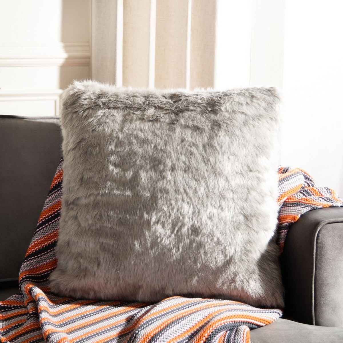 Pillows tend to flatten during transit, but these tips should help you get that pillow into its fluffiest shape quickly! Once unpacked, gently knead the pillow to help loosen the fibers. Throw the pillow in a dryer on a low tumble setting. The most important tip is to include a sock stuffed with a tennis ball to help "beat" the pillow into its fluffy form. Remove from the dryer, and proudly display your new piece of couch art!