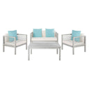 - Dimensions: Bench: 51.2"W x 25.6"D x 25.5"H, Armchair: 27.5"W x 25.6"D x 25.5"H, Table: 29.37"W x 23.6"D x 16.9"H