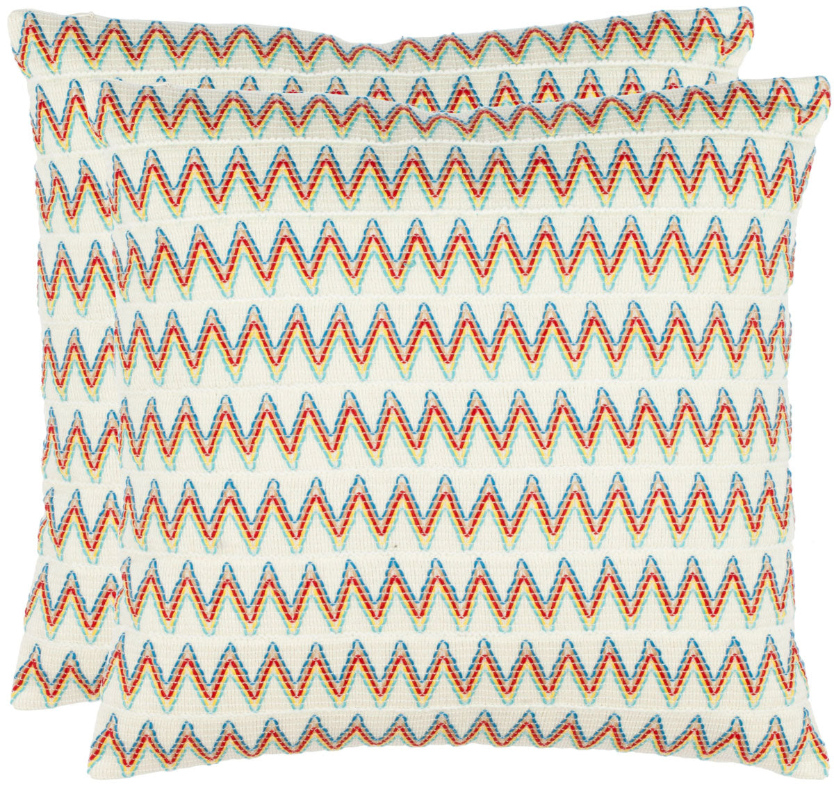 Refresh your bedroom, living room or den with the cheerful zigzag stripes of light blue, red, yellow, beige and blue on a background of cream-toned 100% polyester.