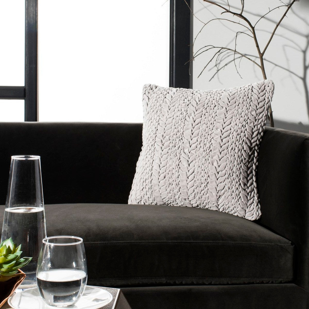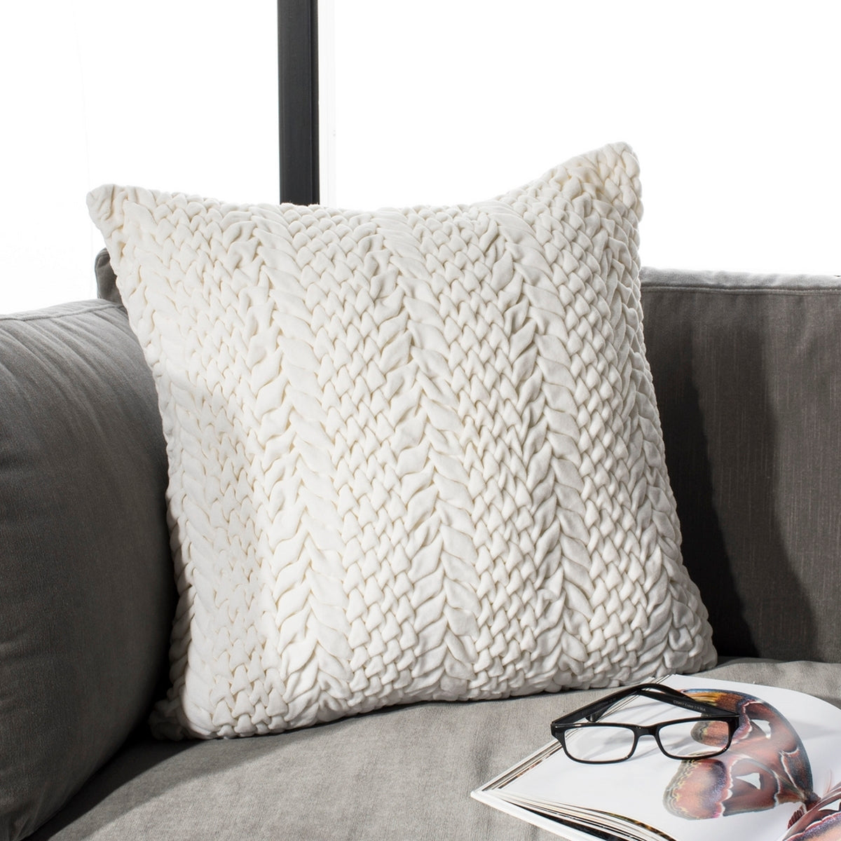 Pillows tend to flatten during transit, but these tips should help you get that pillow into its fluffiest shape quickly! Once unpacked, gently knead the pillow to help loosen the fibers. Throw the pillow in a dryer on a low tumble setting. The most important tip is to include a sock stuffed with a tennis ball to help "beat" the pillow into its fluffy form. Remove from the dryer, and proudly display your new piece of couch art!