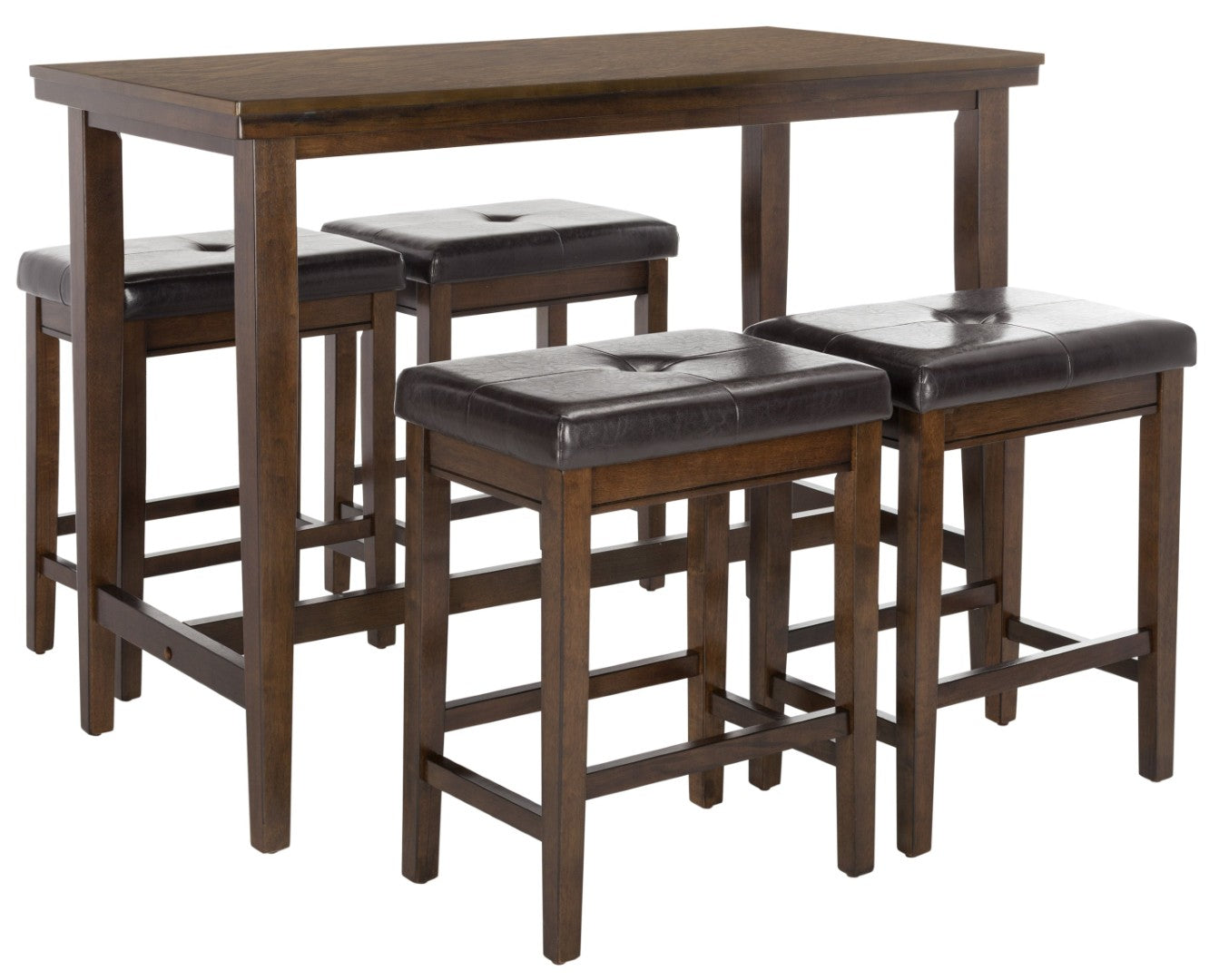 Bring A Touch Of English-Inspired Charm To Your Dining Or Entertaining Area With This Stylish 5-Piece Pub Set. Thoughtfully Crafted For Both Everyday Meals And Relaxed Social Gatherings, The Set Combines Durable Construction With Comfortable Upholstered Seating And A Classic Dark Brown Finish For Timeless Appeal.