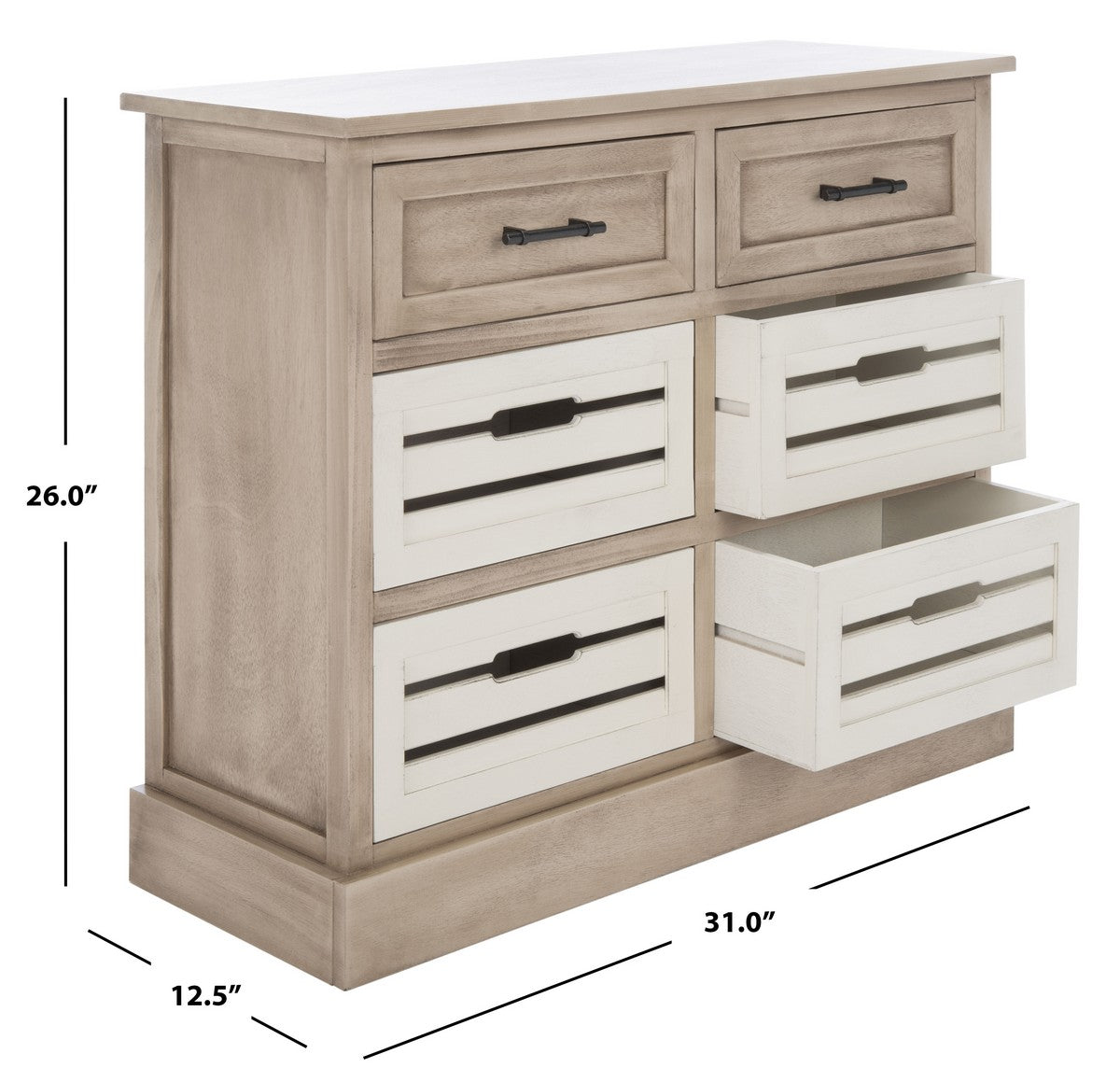 - Wood Color: DISTRESSED WHITE FRAME / GREIGE DRAWERS