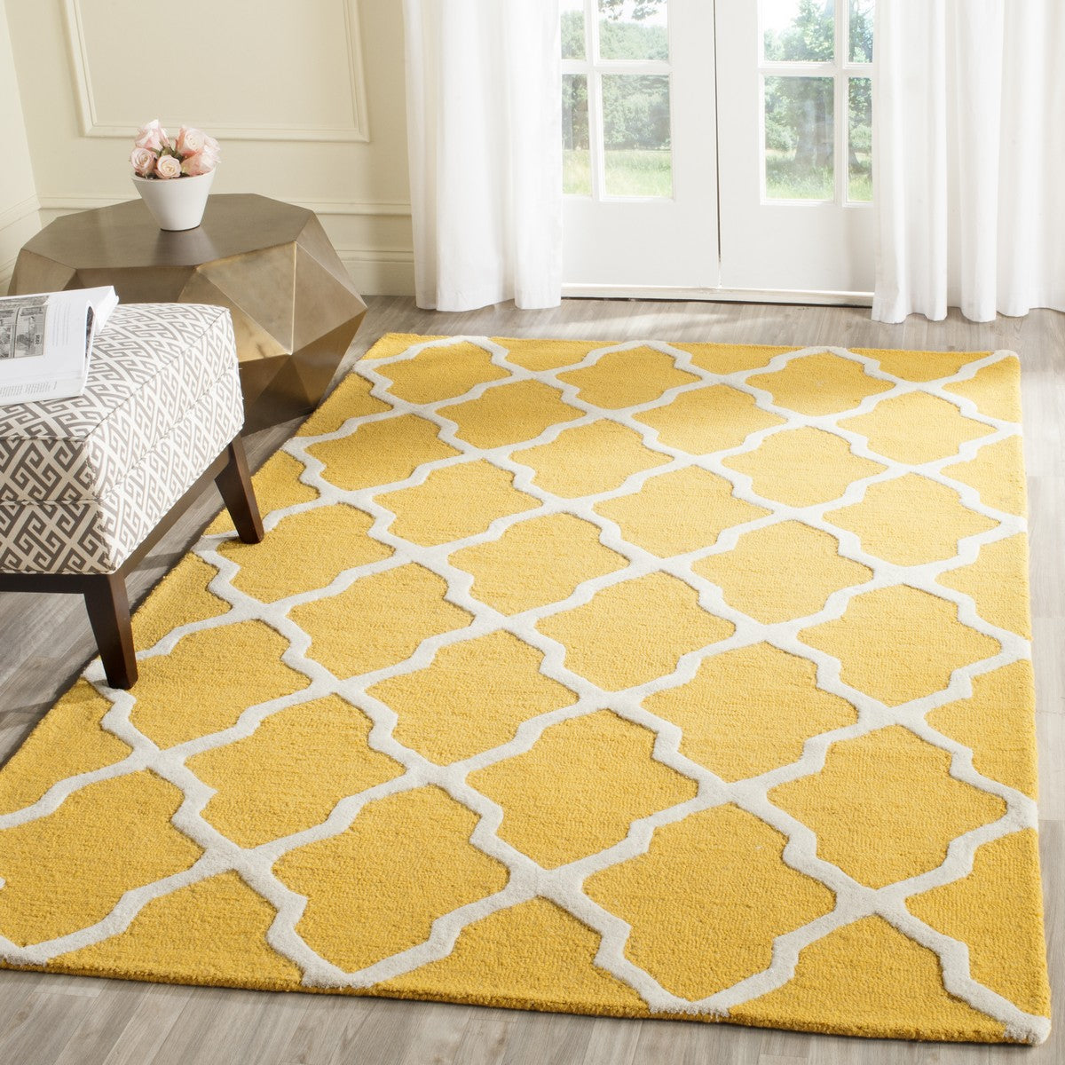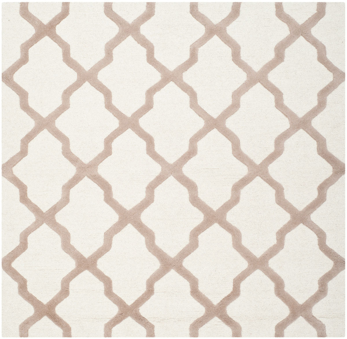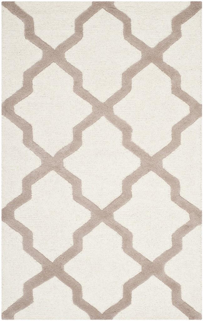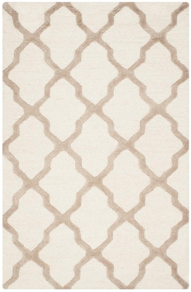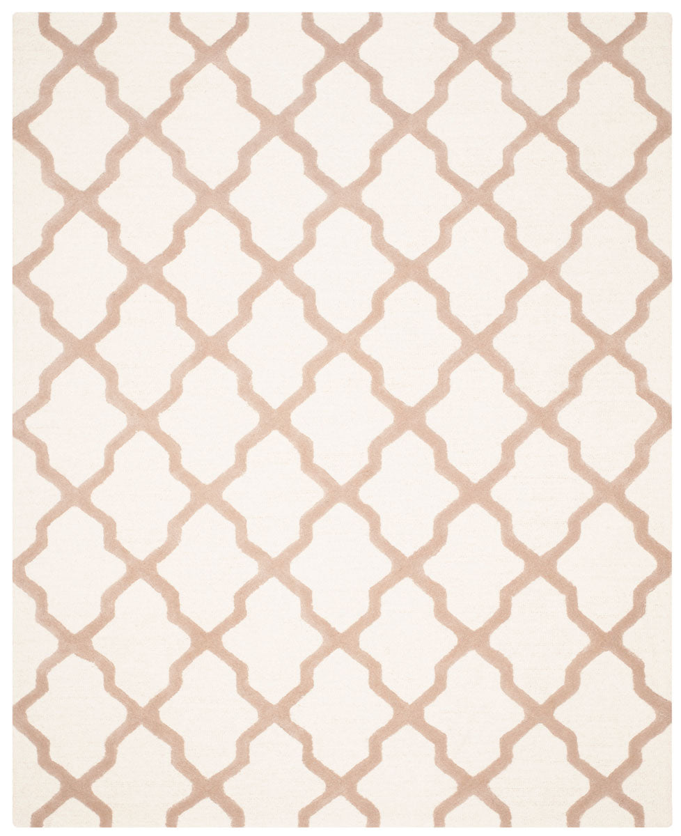 his simple but striking rug contrasts plush and pile textures for rich dimension.