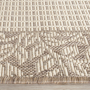 isplay ideal for any area of the home, inside or out. This all-weather floor covering is made from power-loomed synthetic yarns to retain vibrant color year after year.