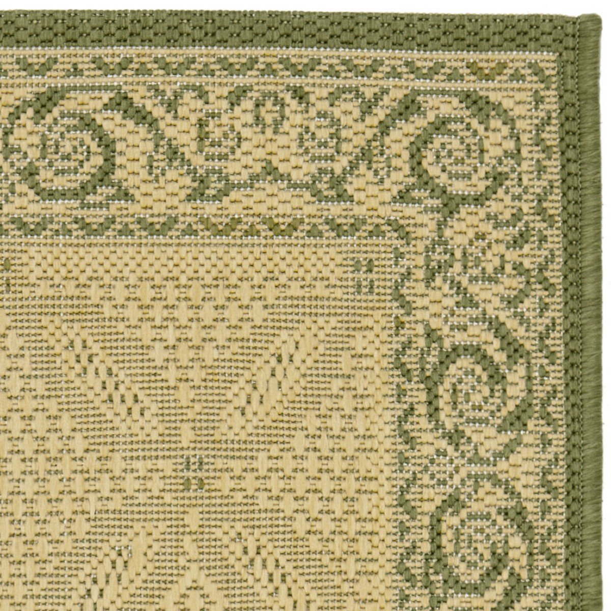 with this lovely weather-smart floor covering. Power-loomed using synthetic yarns for easy-clean, easy-care beauty all year long.