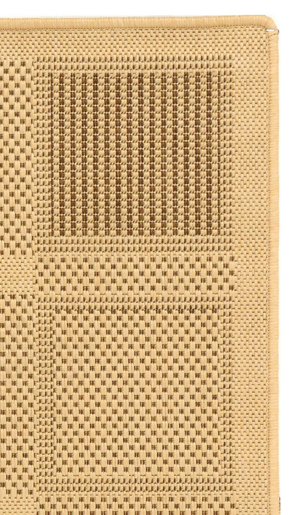 ing is made from a sisal weave of soft synthetic yarns to resist stains and fading from the sun.
