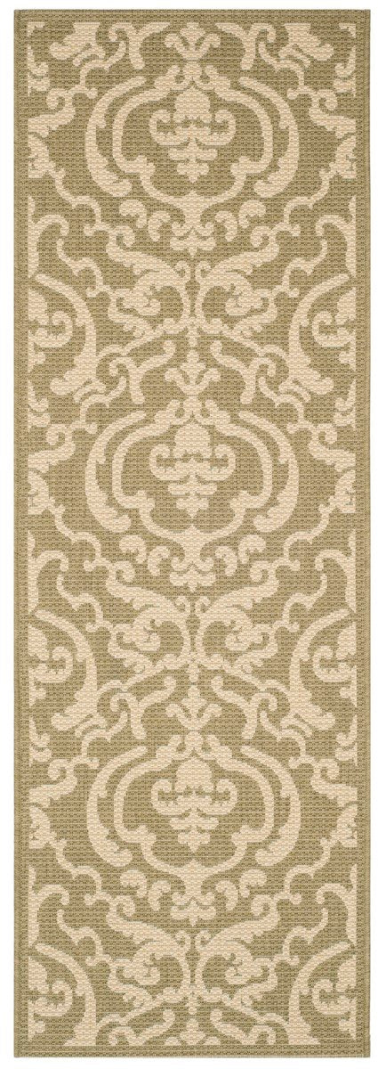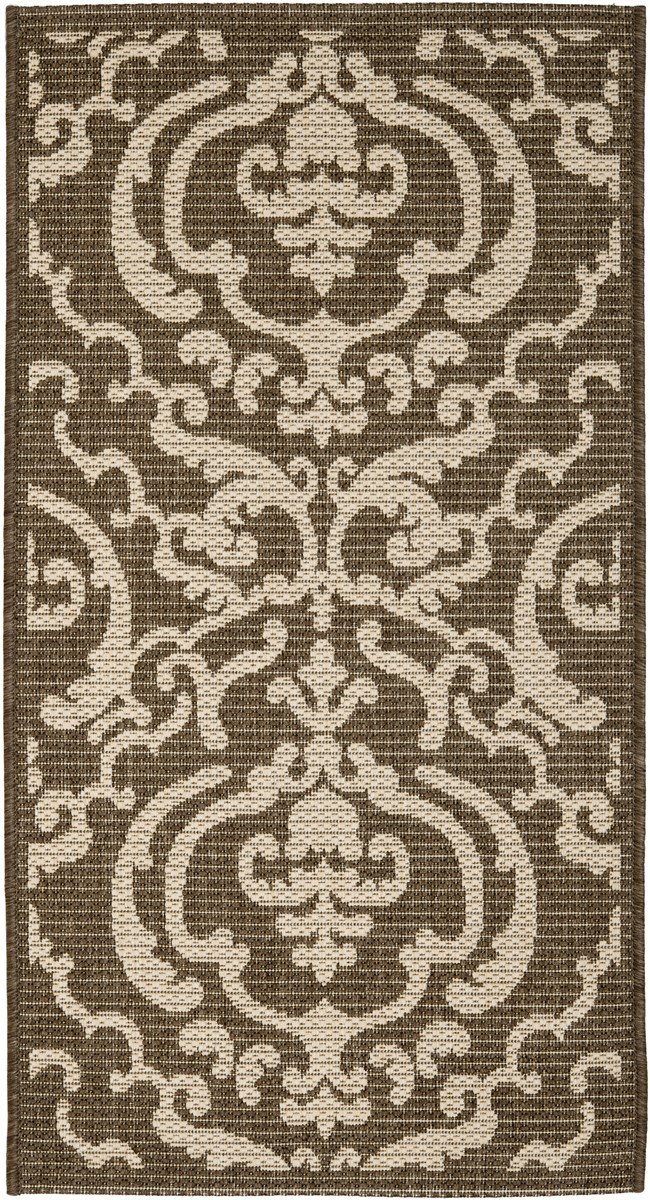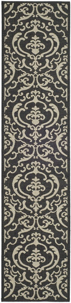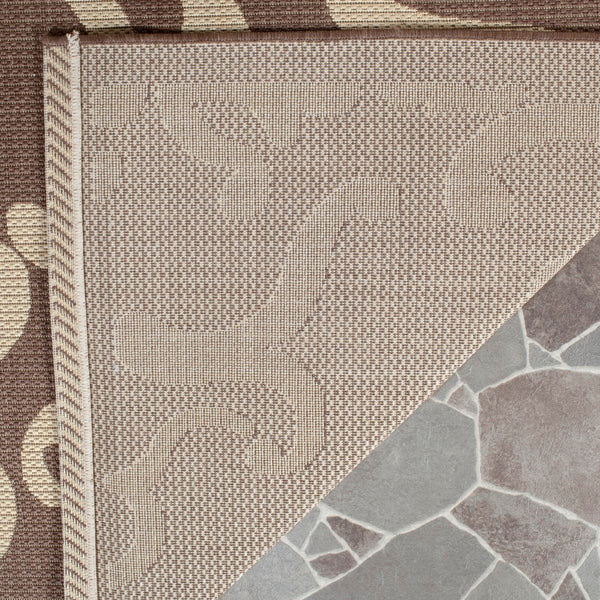 Constructed using a sisal weave of synthetic yarns to resist fading and stains.