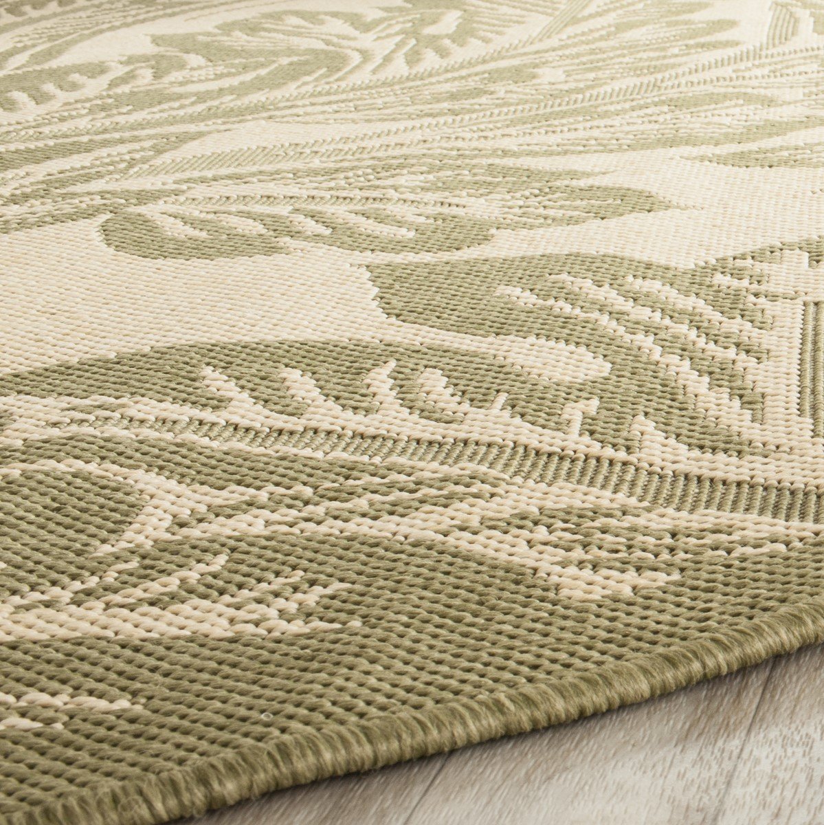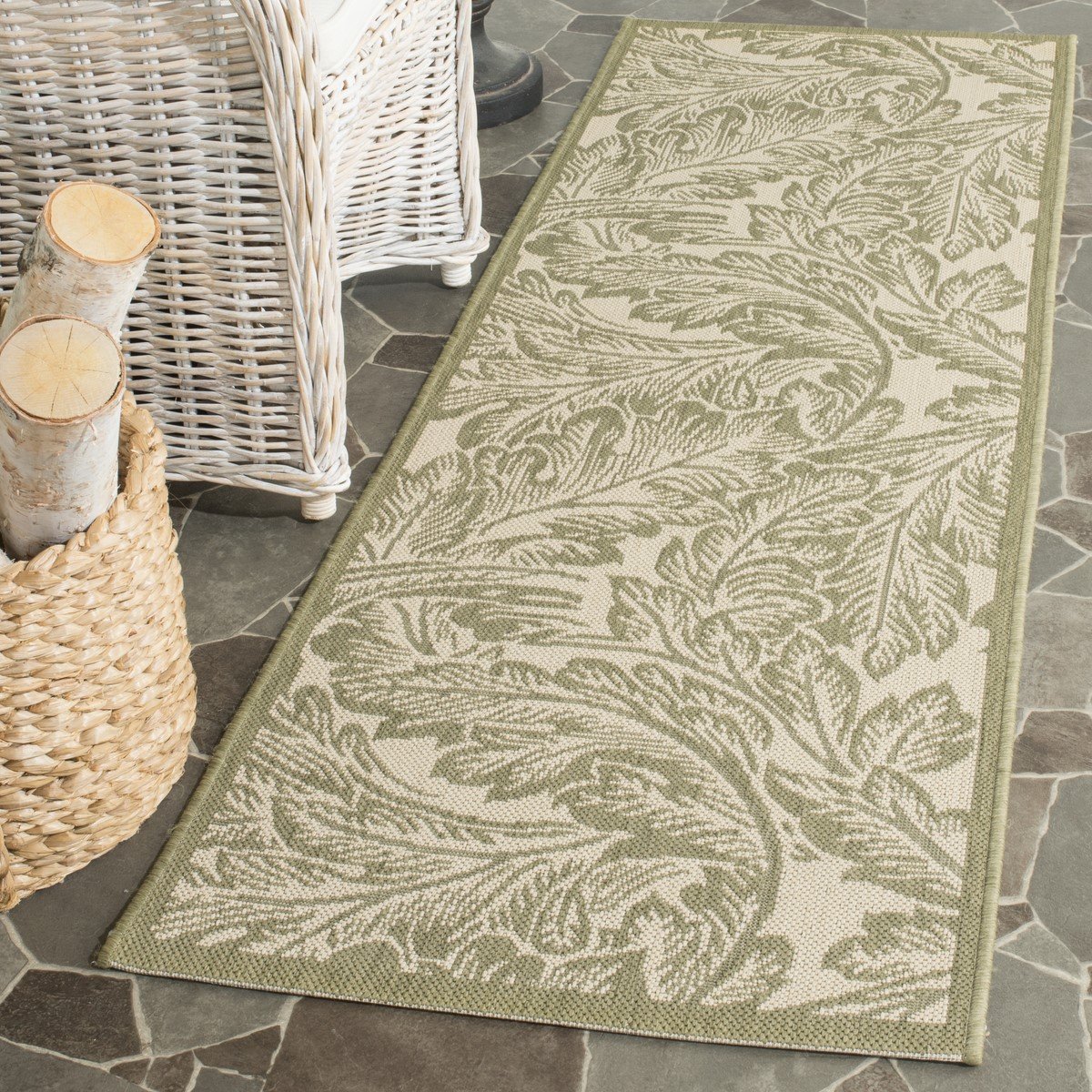 esistant area rug uses soft, power-loomed synthetic yarns to stand up to harsh seasonal elements year after year.