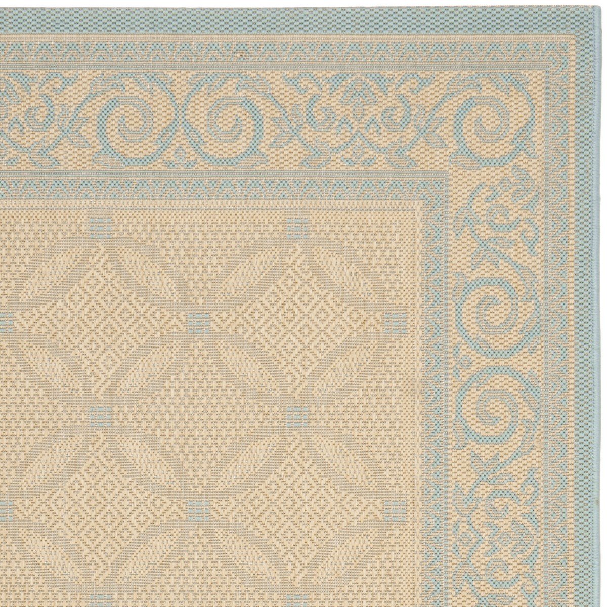 damask vine scrolls. ''This all-weather floor covering is made from power-loomed synthetic yarns for the ultimate in durability and resistance to weather and fading from the sun.
