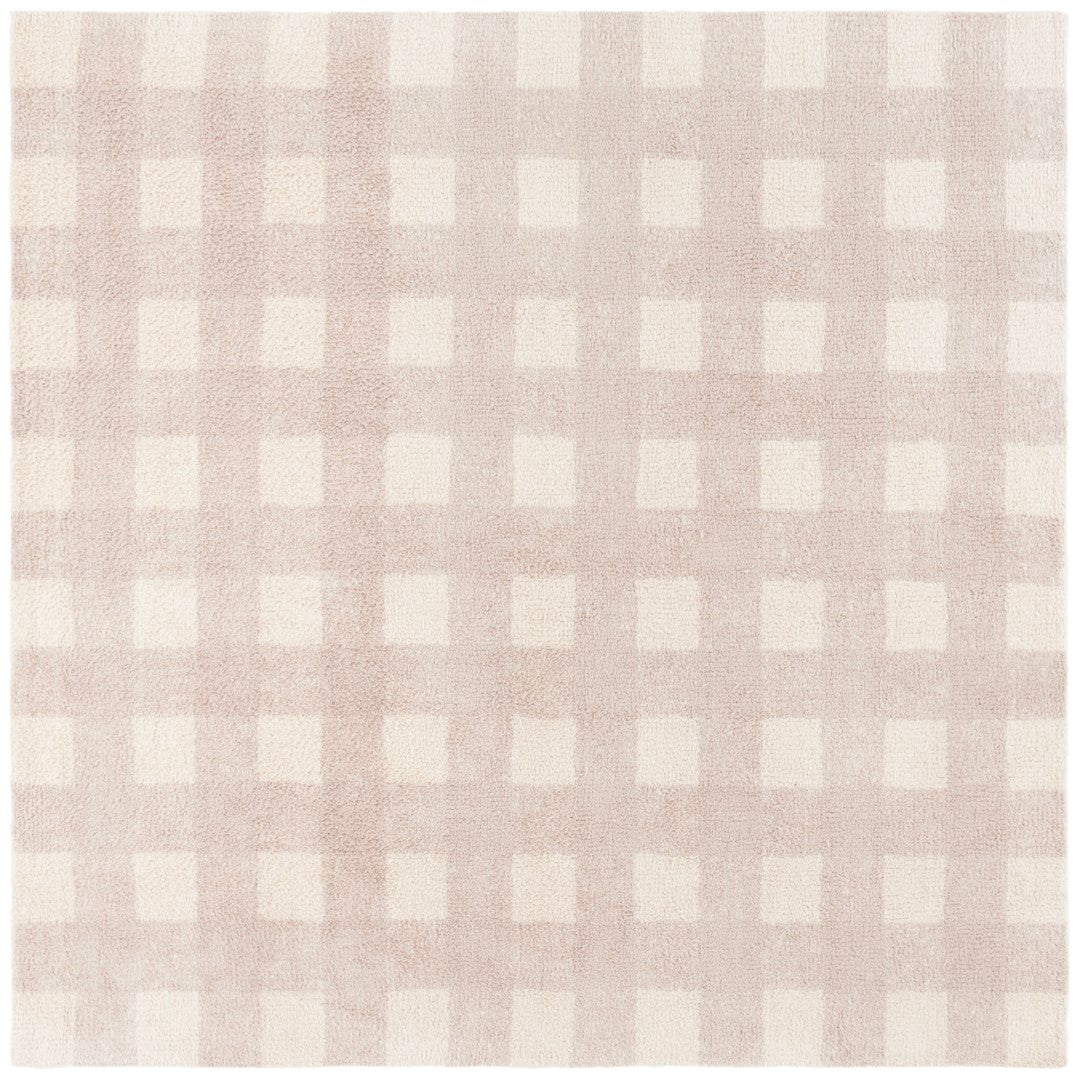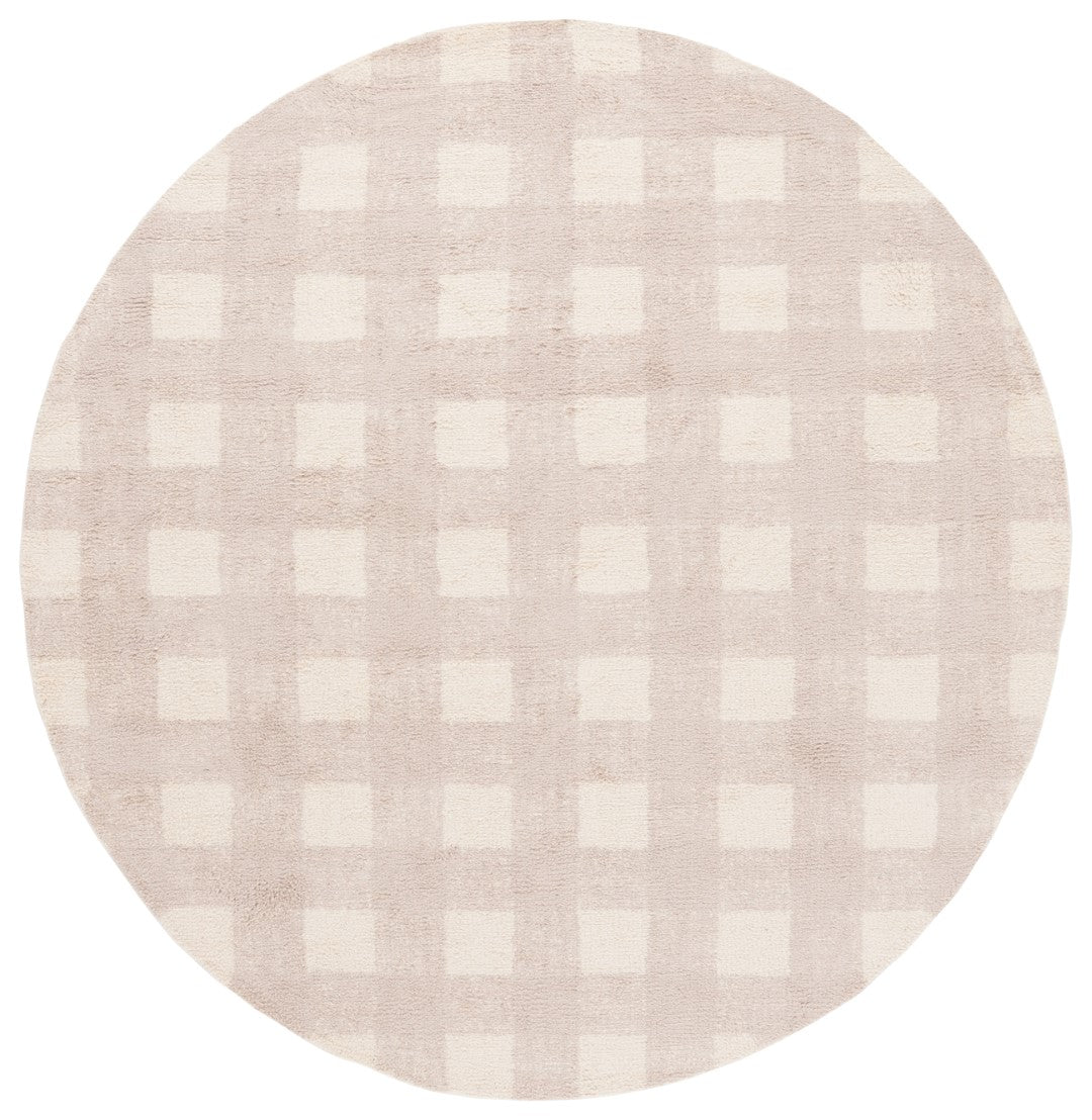The modern style is beautifully expressed through its simplistic ivory and beige color palette, lending a serene and neutral accent to any interior space. The contemporary checkered pattern, as depicted in the image, gives the rug a sense of depth and texture, making it a compelling focal point in a minimalist or modern aesthetic.