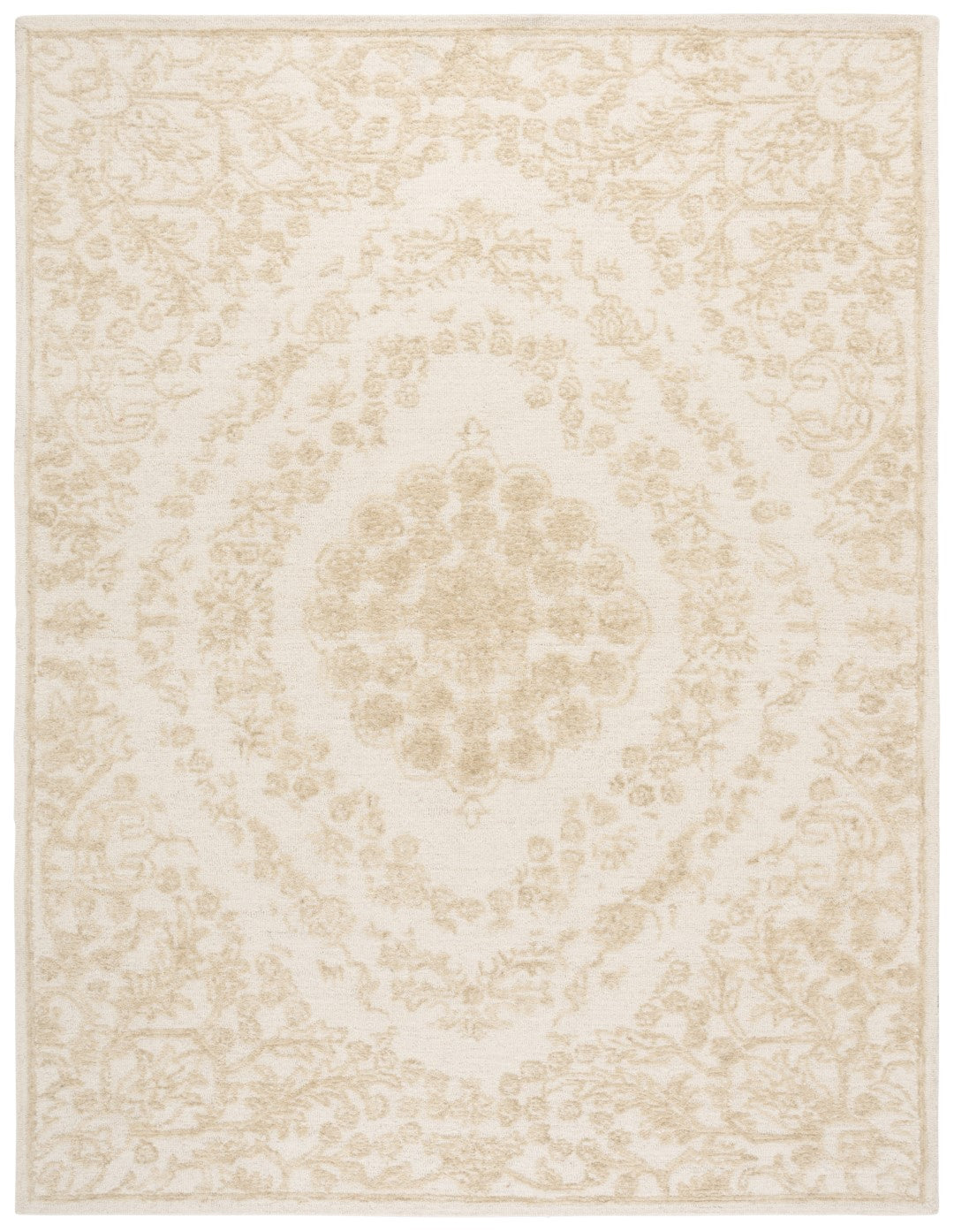 This rug's enchanting design boasts a central medallion flanked by luxurious flourishes and motifs that recollect the grandeur of antique tapestries. However, its modern interpretation through the use of light tones ensures versatility, able to enrich both bright and neutral interiors alike.