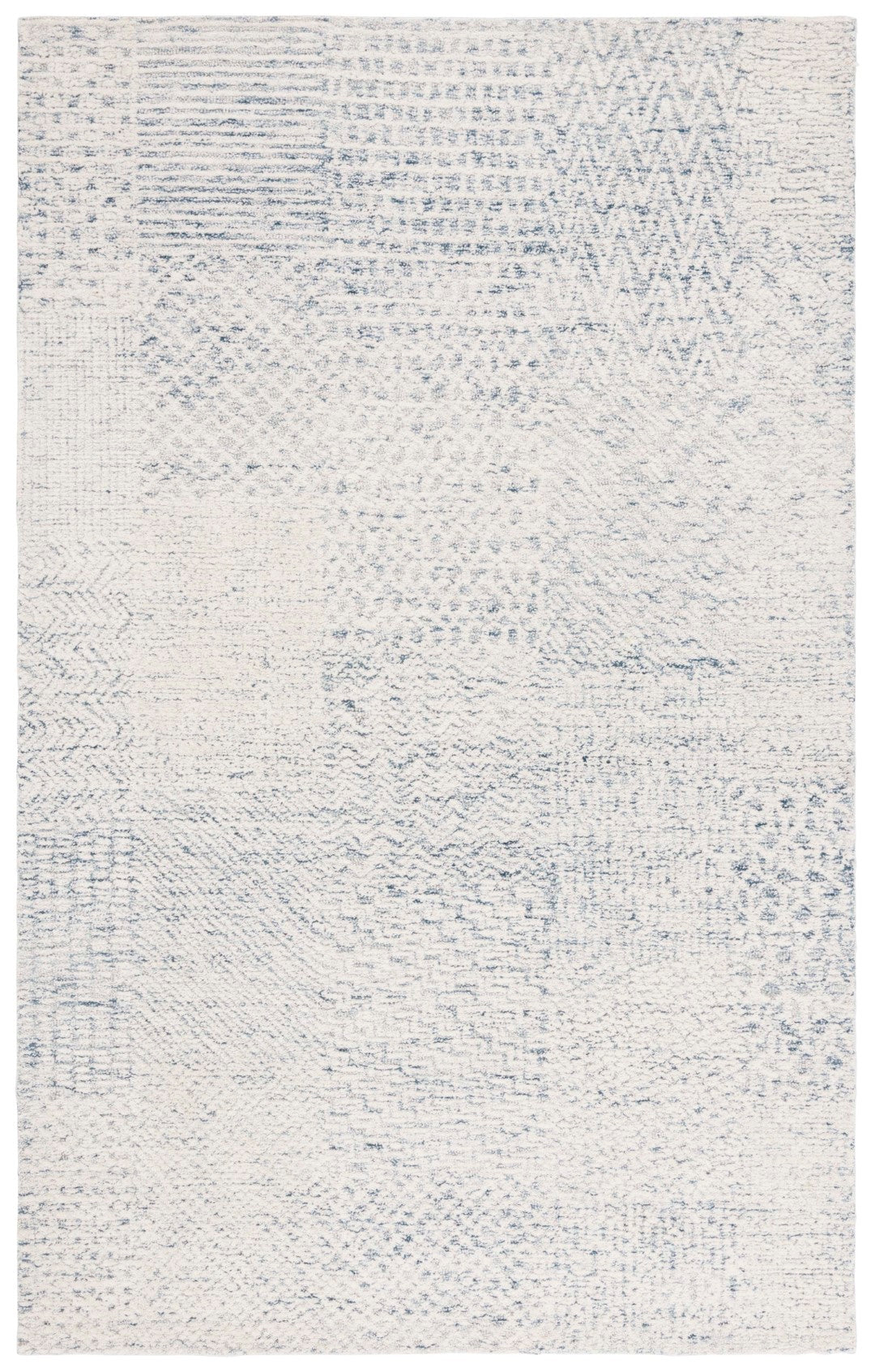 The sophisticated ivory and blue color palette is complemented by an intricate series of patterns that unite to create a harmonious visual texture. Inspired by the image provided, the design features an array of geometric motifs and abstract brushstrokes, evoking a sense of calm, serenity, and contemporary style.