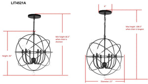- Dimensions: 22"W x 22"D x 36.5"-108.5"H