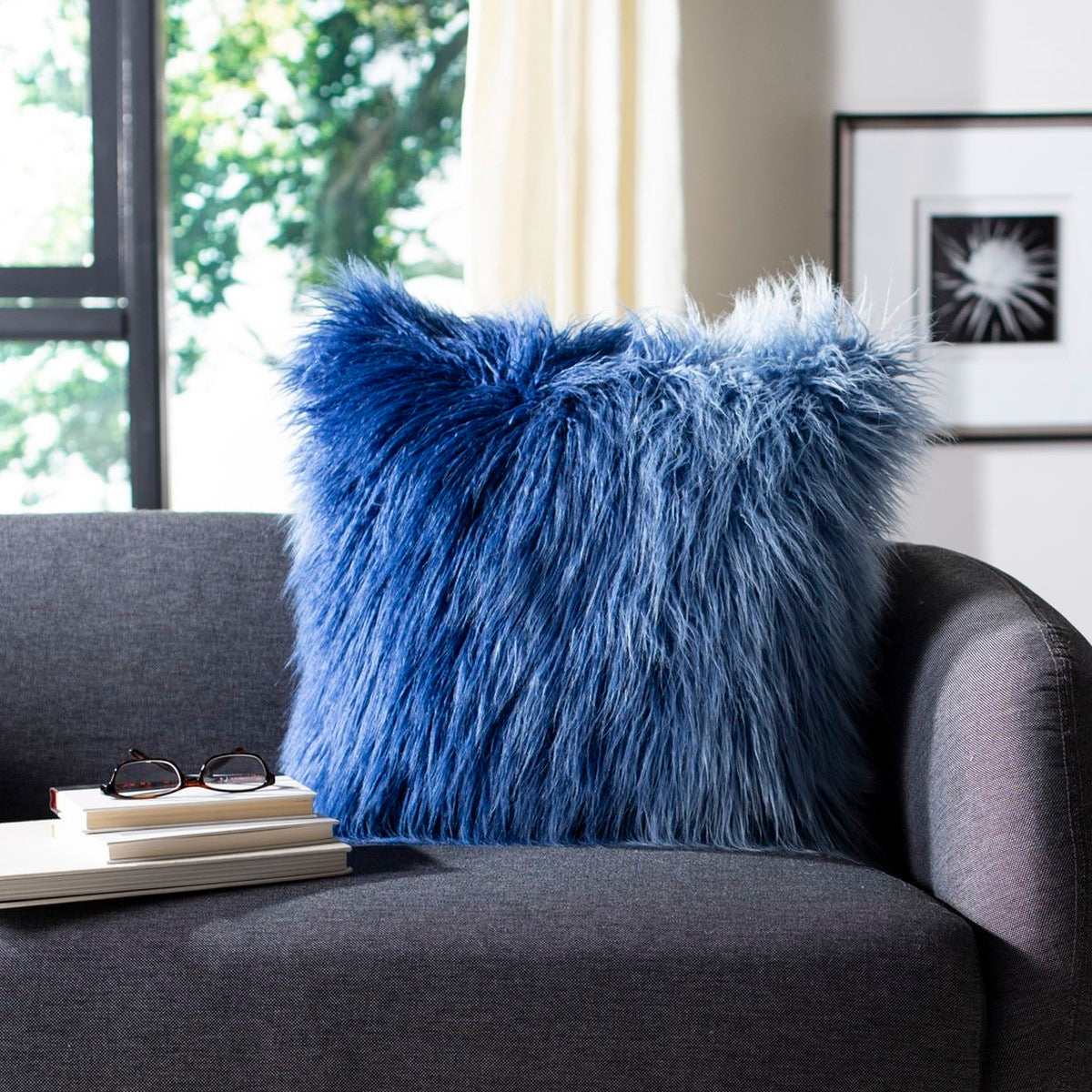 Pillows tend to flatten during transit, but these tips should help you get that pillow into its fluffiest shape quickly! Once unpacked, gently knead the pillow to help loosen the fibers. Throw the pillow in a dryer on a low tumble setting. The most important tip is to include a sock stuffed with a tennis ball to help "beat" the pillow into its fluffy form. Remove from the dryer, and proudly display your new piece of couch art!