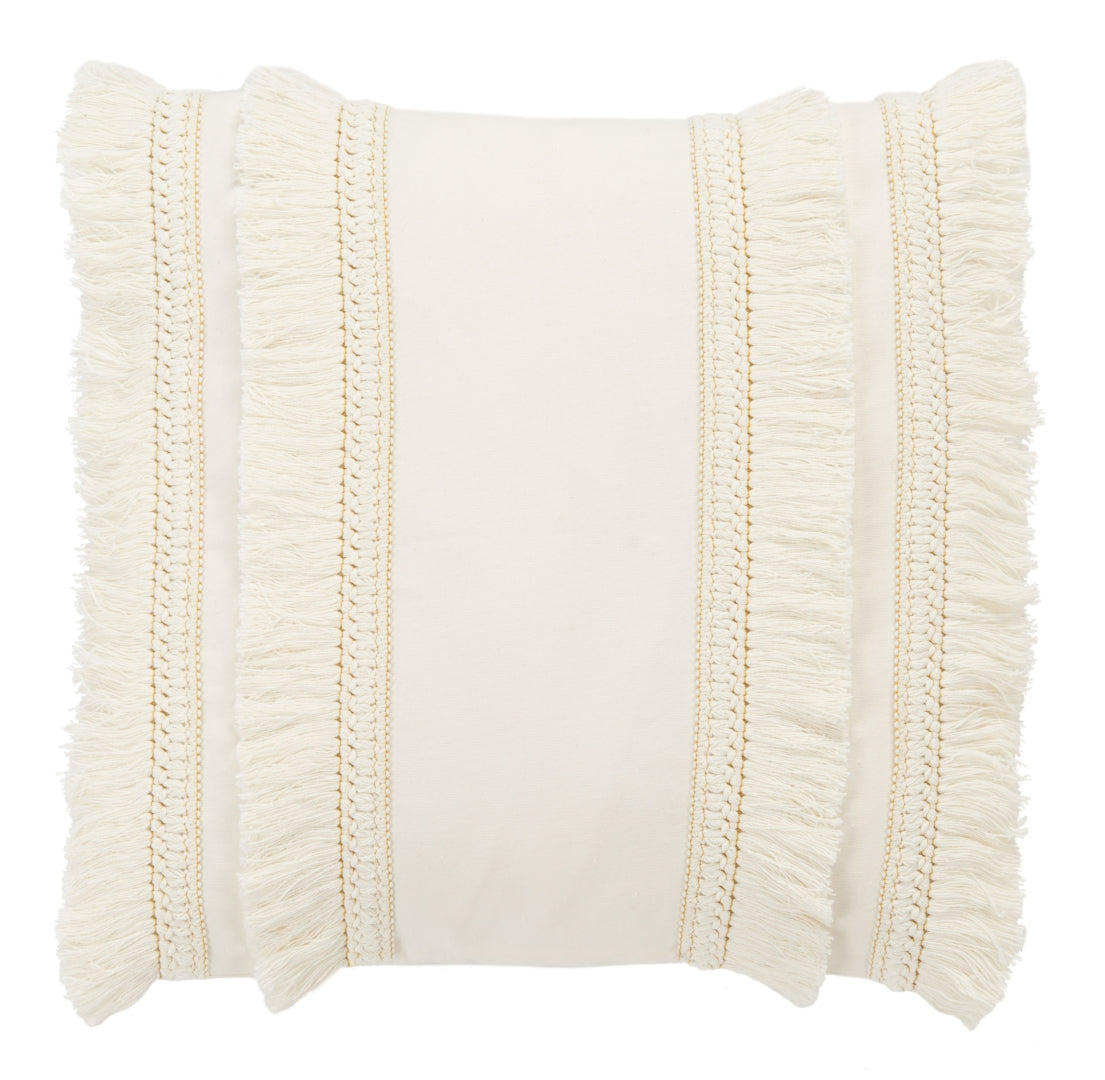 Pillows tend to flatten during transit, but these tips should help you get that pillow into its fluffiest shape quickly! Once unpacked, gently knead the pillow to help loosen the fibers. Throw the pillow in a dryer on a low tumble setting. The most important tip is to include a sock stuffed with a tennis ball to help "beat" the pillow into its fluffy form. Remove from the dryer, and proudly display your new piece of couch art!