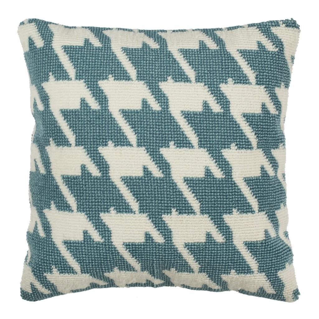 Pillows tend to flatten during transit, but these tips should help you get that pillow into its fluffiest shape quickly! Once unpacked, gently knead the pillow to help loosen the fibers. Throw the pillow in a dryer on a low tumble setting. The most important tip is to include a sock stuffed with a tennis ball to help "beat" the pillow into its fluffy form. Remove from the dryer, and proudly display your new piece of couch art!