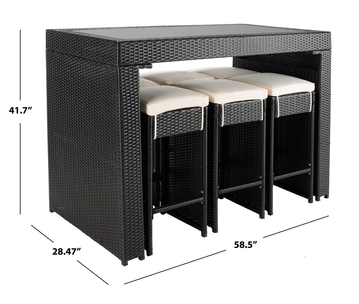 - Full Dimensions [W / D / H]: TABLE: 58.5" x 28.47" x 41.7" CHAIR: 14.04" x 14.04" x 28.08"