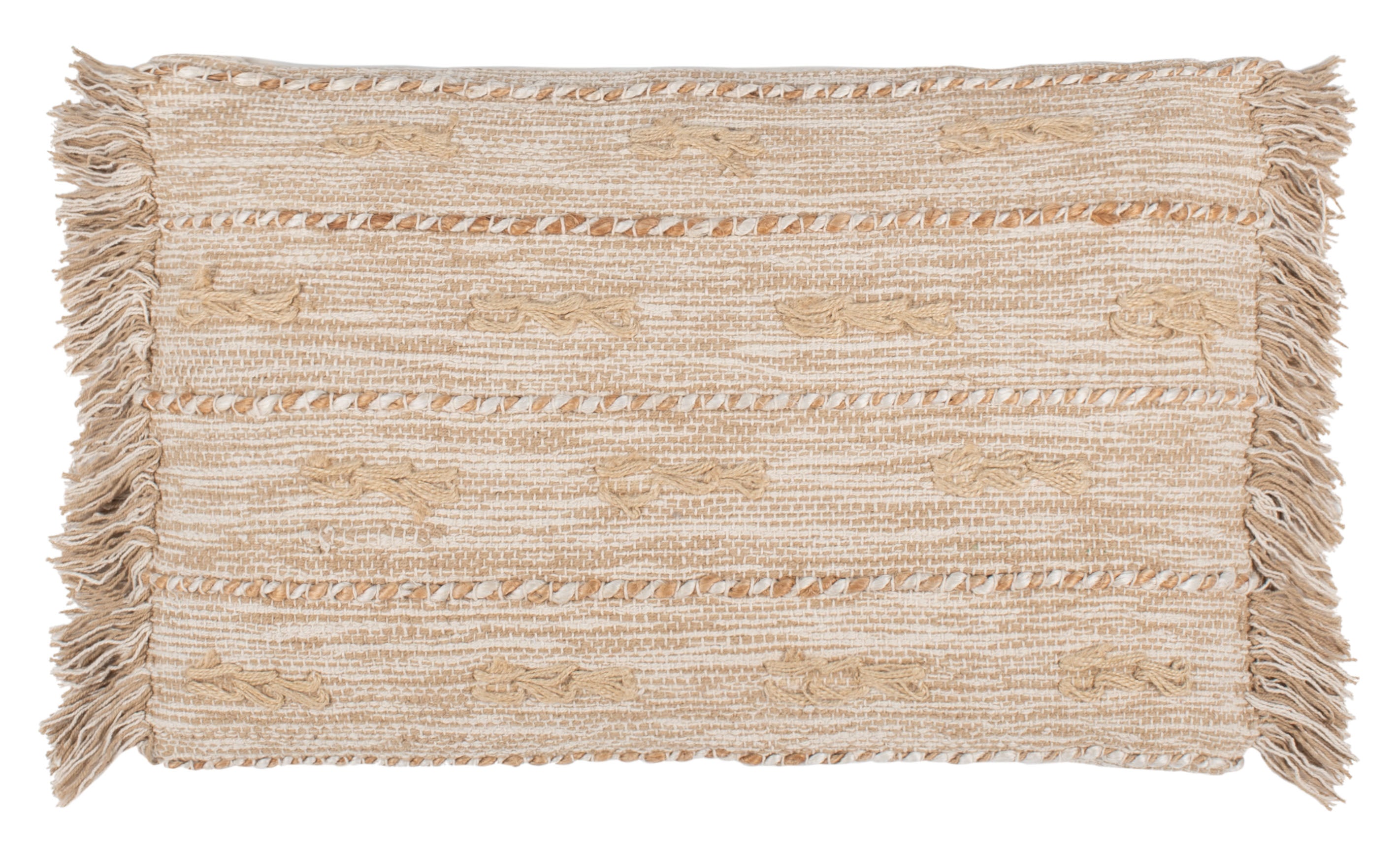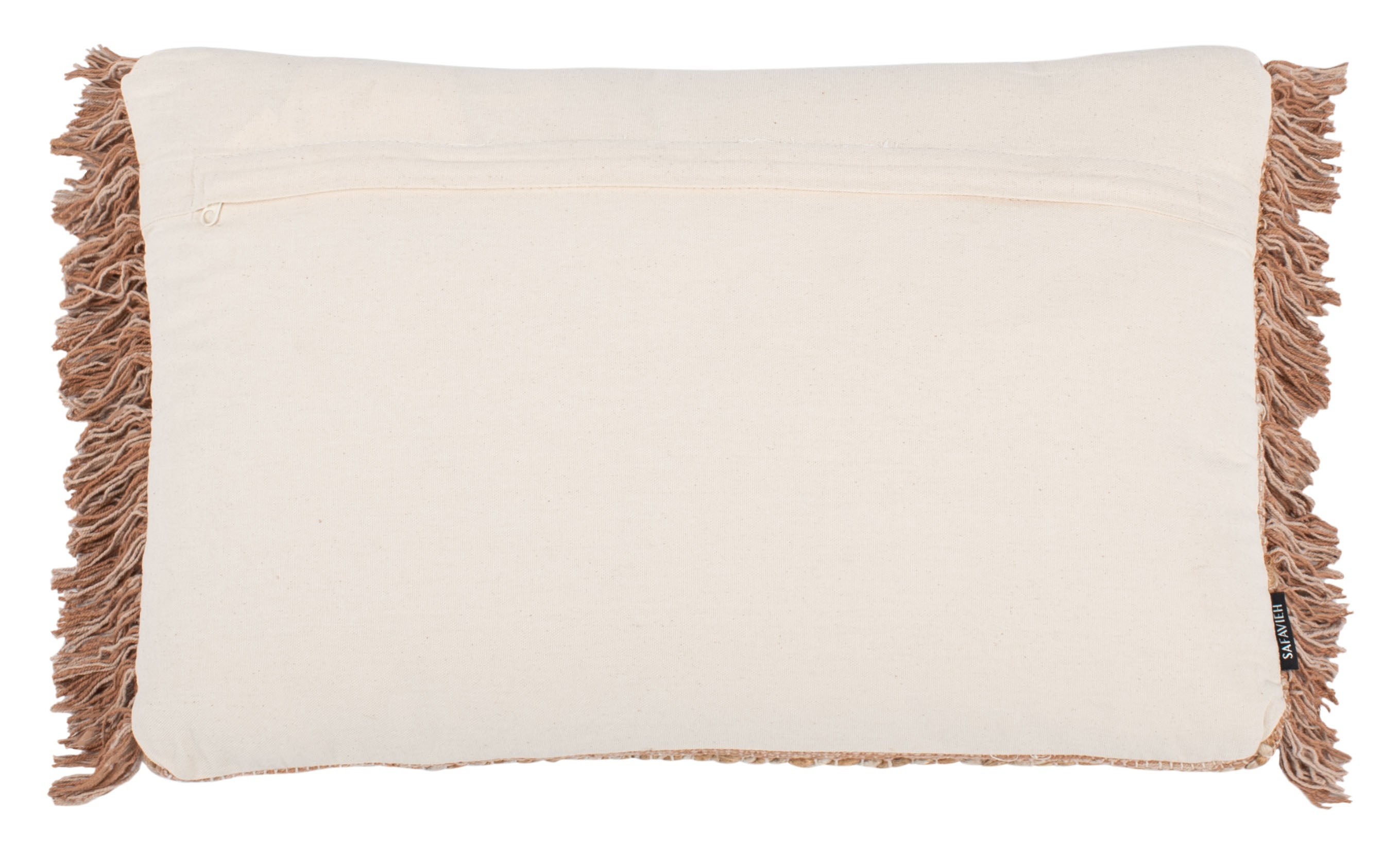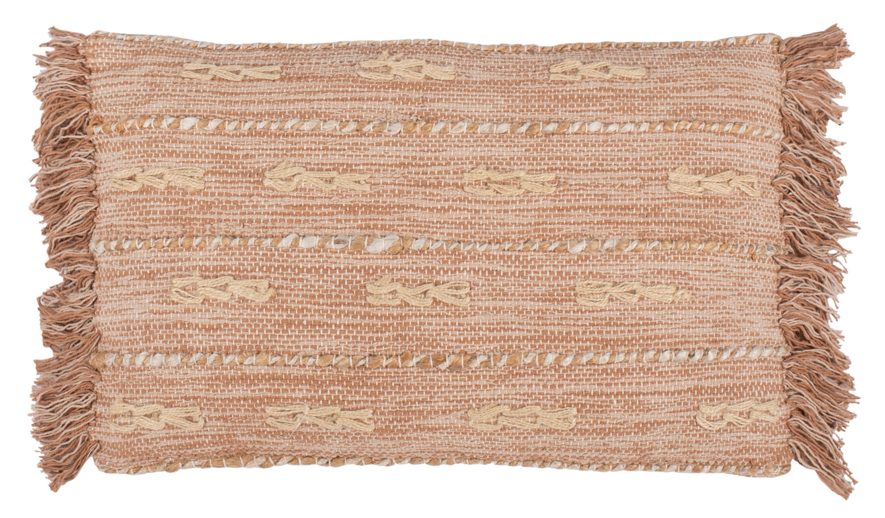 Pillows tend to flatten during transit, but these tips should help you get that pillow into its fluffiest shape quickly! Once unpacked, gently knead the pillow to help loosen the fibers. Throw the pillow in a dryer on a low tumble setting. The most important tip is to include a sock stuffed with a tennis ball to help "beat" the pillow into its fluffy form. Remove from the dryer, and proudly display your new piece of couch art!