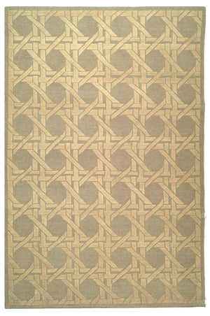 silk embellish a subtly colored border against a wool neutral field creating a rug that is classical in personality yet simplified for 21st century homes. Hand-knotted in Nepal.