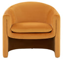 Make a bold style statement with this captivating Laylette Accent Chair. Laylette’s low-slung back and stark lines are artistically juxtaposed with contoured angles and soft curves, and its plush overall pumpkin orange velvet upholstery is absolutely luxurious.