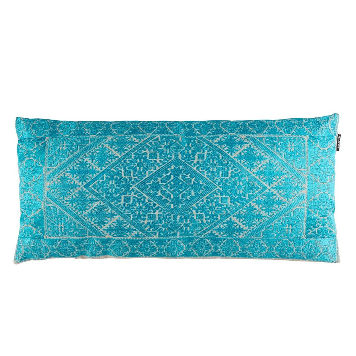 Pillows tend to flatten during transit, but these tips should help you get that pillow into its fluffiest shape quickly!Once unpacked, gently knead the pillow to help loosen the fibers. Throw the pillow in a dryer on a low tumble setting. The most important tip is to include a sock stuffed with a tennis ball to help "beat" the pillow into its fluffy form. Remove from the dryer, and proudly display your new piece of couch art!