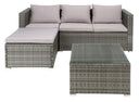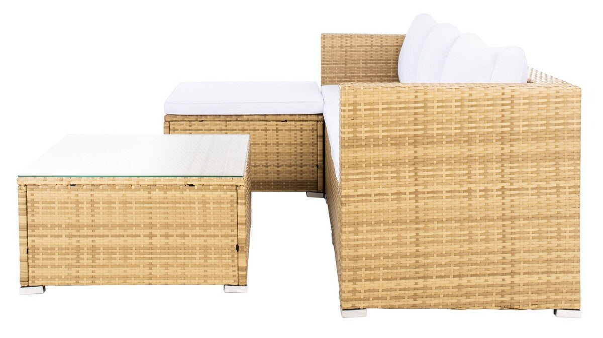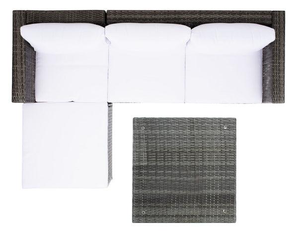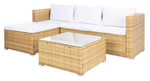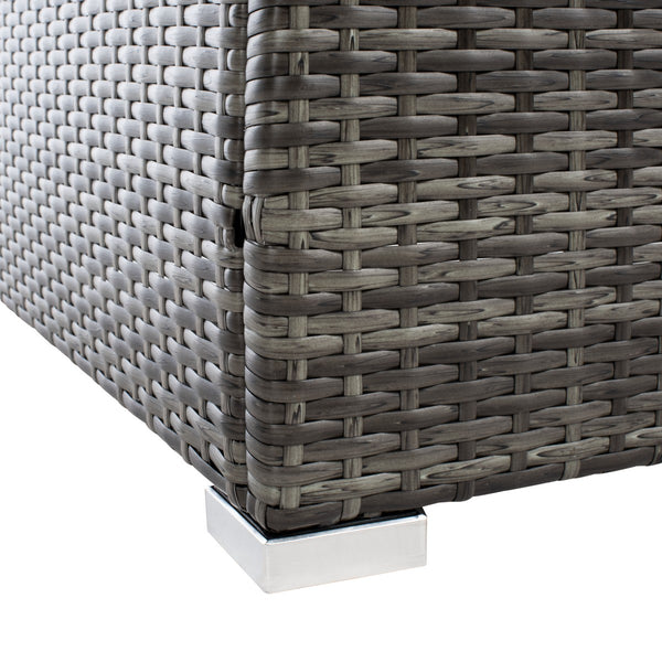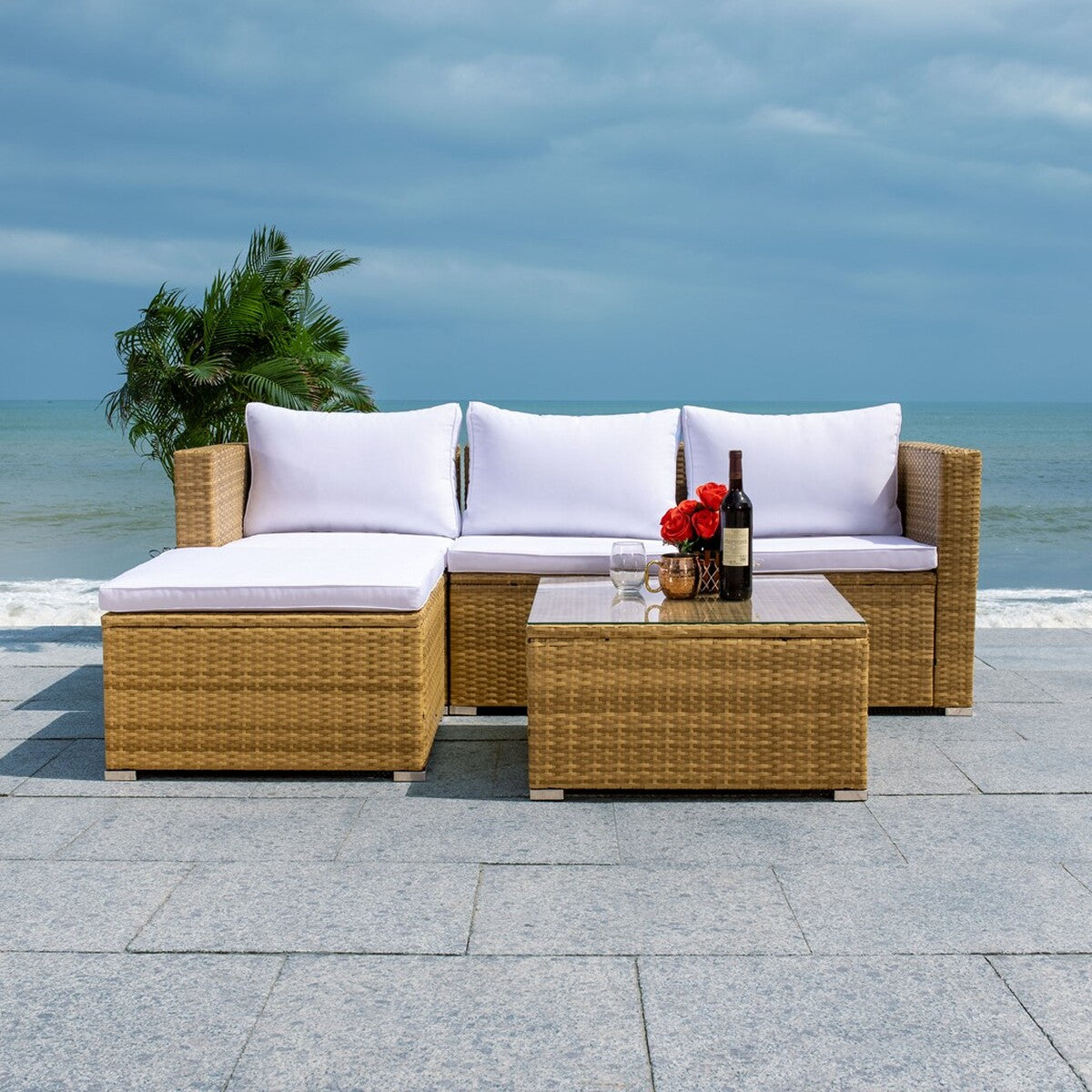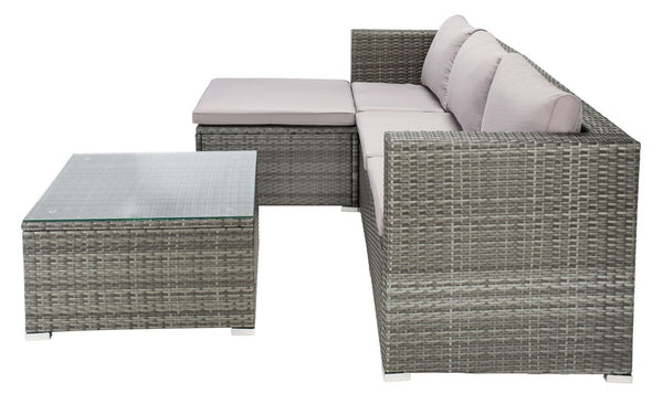 Styled to bring the cozy living room to outdoor lounging, the Madalina Living Set invites you to soak up the sun in luxury. Madalina’s plush grey cushions and matching frames blend seamlessly with any porch or patio décor, transforming your backyard into a beachside resort. Includes a glass topped black coffee table.