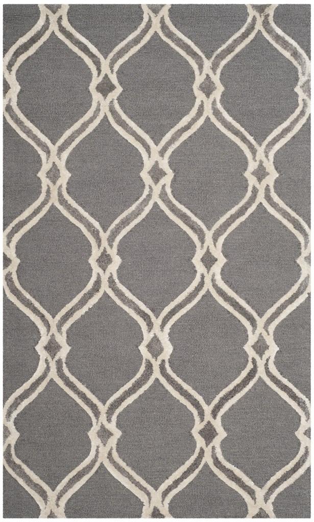 his simple but striking rug contrasts plush and pile textures for rich dimension.