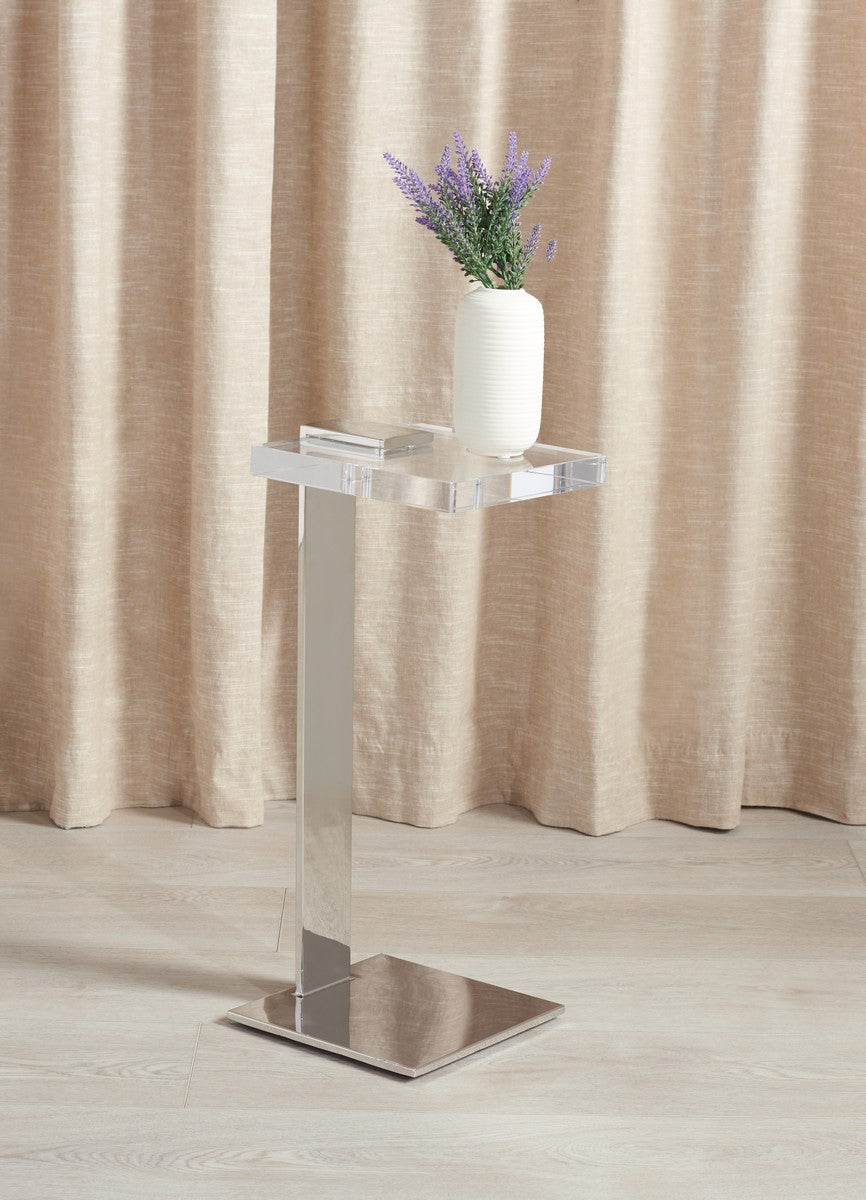 - CARE INSTRUCTIONS: ACRYLIC CARE: Blot up spills immediately. Use coasters on table tops under beverages. Use trivots or mats under hot dishes or cookware. Clean with warm water and dry surface immediately after cleaning. Do not use cleaners that contain acid such as bathroom cleaners, grout cleaners, and tile cleaners. Do not use abrasive cleaners in either dry or liquid forms. Use a cleaner and polish formulated for acrylic surfaces. METAL CARE: Wipe spills immediately. Maintain with regular dusting. Clean with mild soap and water. Dry thoroughly and do not use a brass cleaner.