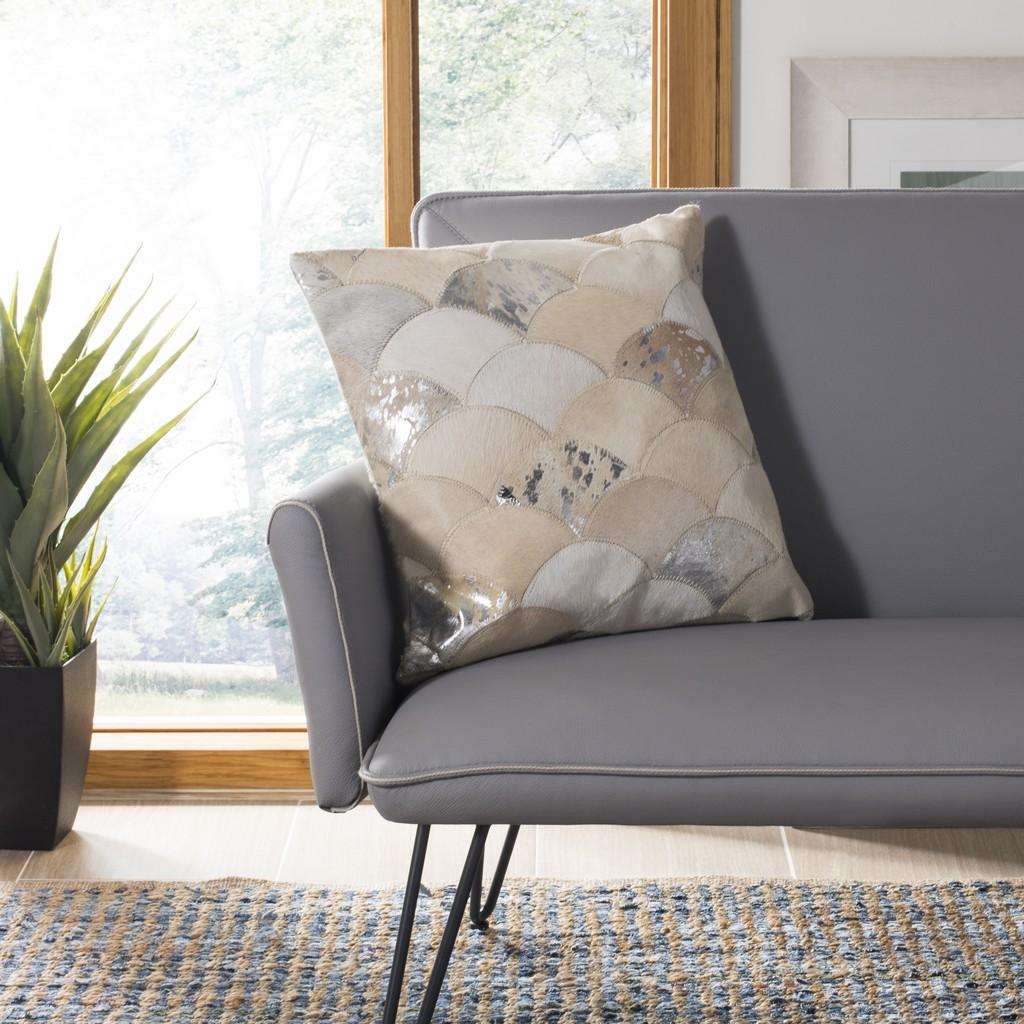 Pillows tend to flatten during transit, but these tips should help you get that pillow into its fluffiest shape quickly! Once unpacked, gently knead the pillow to help loosen the fibers. Throw the pillow in a dryer on a low tumble setting. The most important tip is to include a sock stuffed with a tennis ball to help "beat" the pillow into its fluffy form. Remove from the dryer, and proudly display your new piece of couch art!