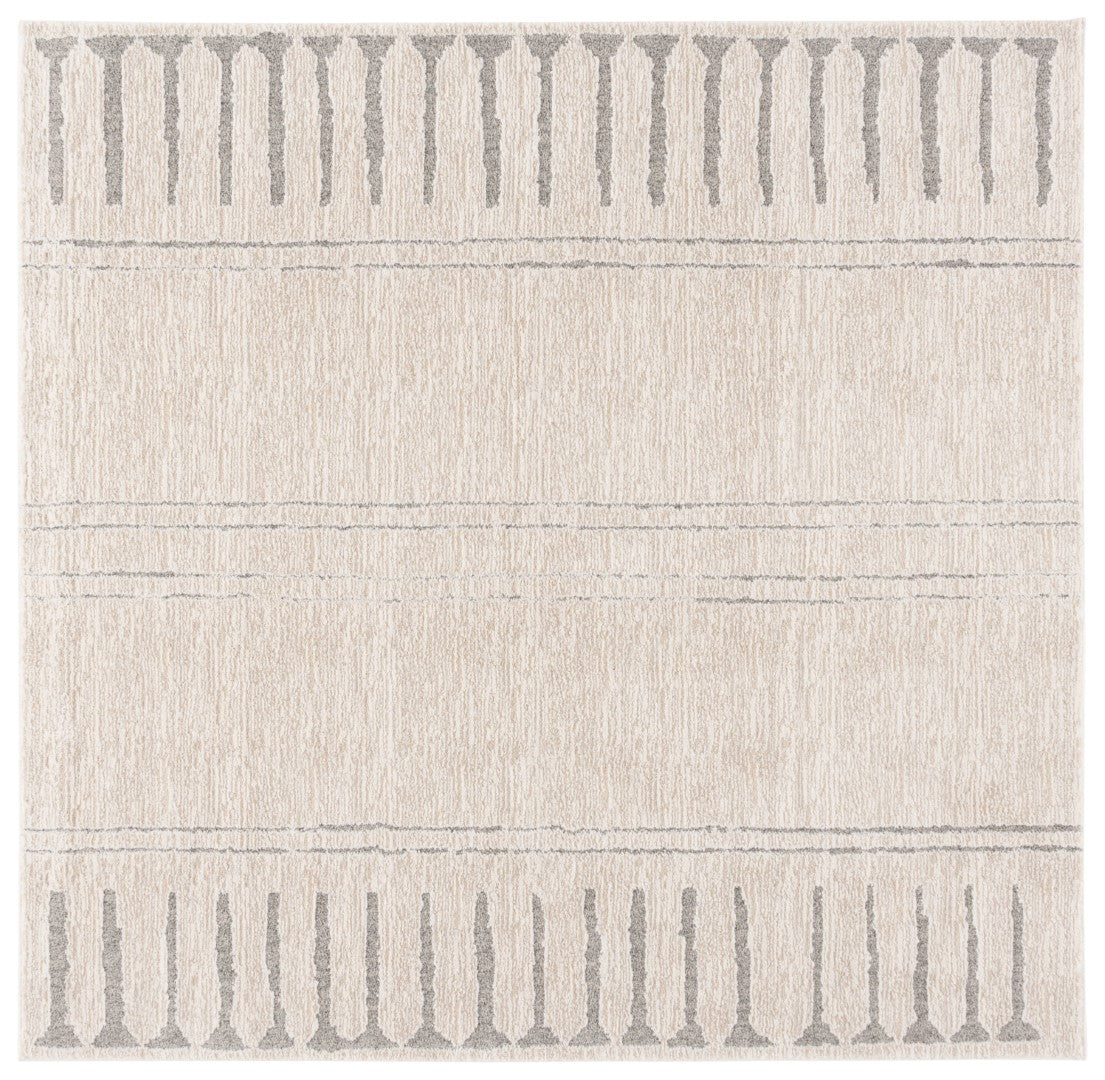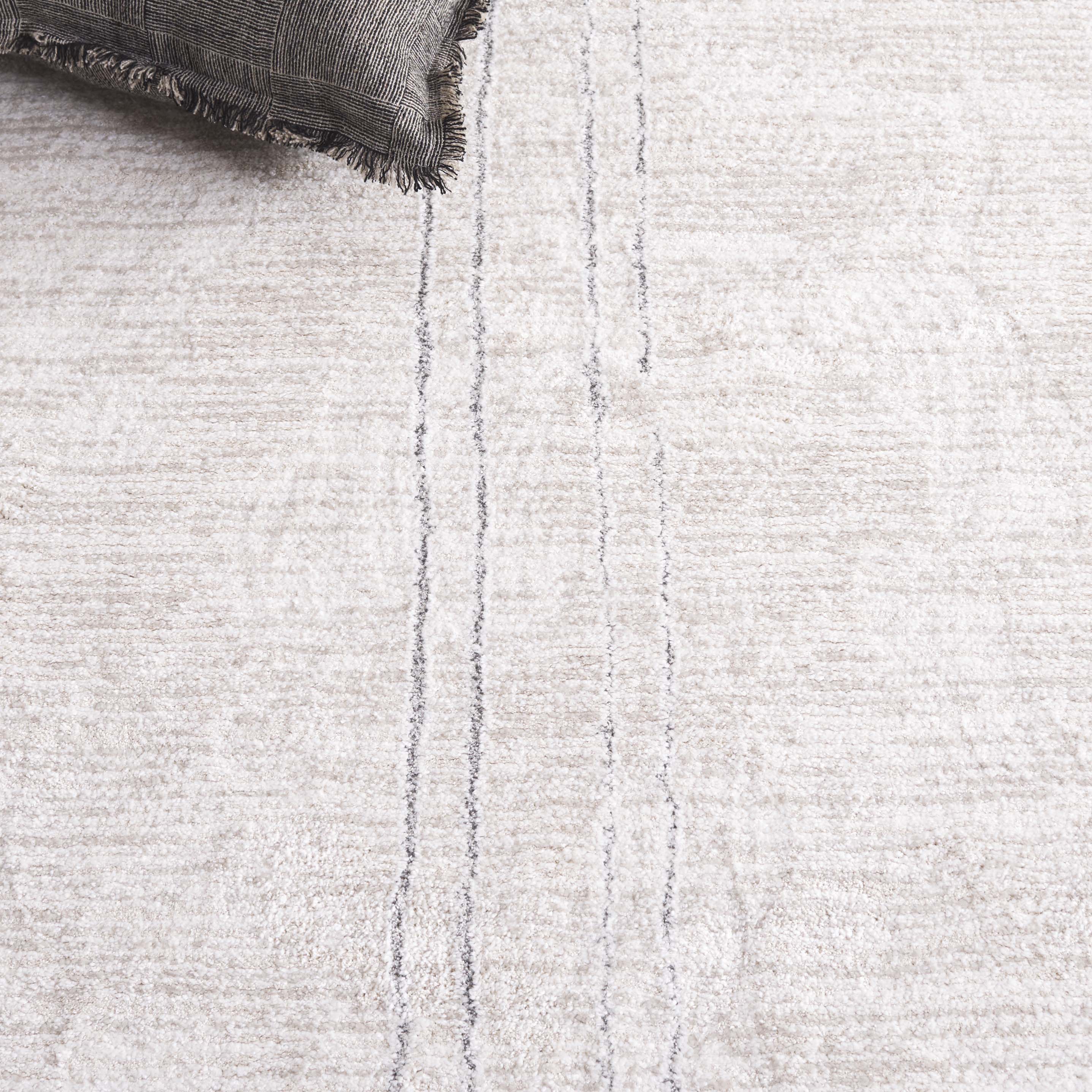 The rug's contemporary styling is accentuated by an elegant pattern of soft ivory interspersed with grey accents, bringing a sense of calm and refinement to any hallway or narrow space. Designed to seamlessly integrate with your modern decor, this runner rug promises to enhance the ambiance of your space with its understated beauty.