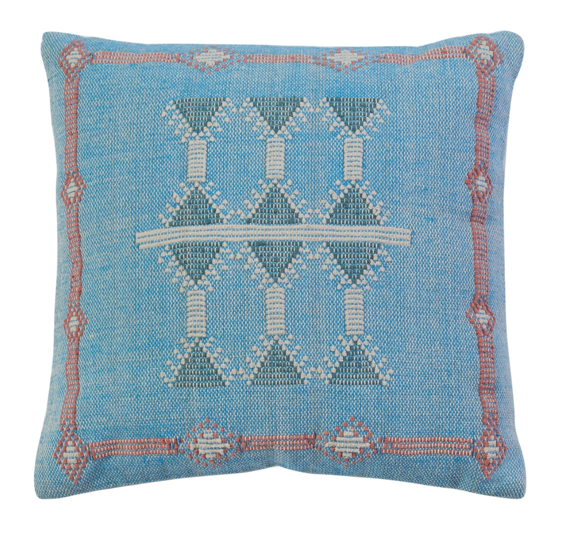 Pillows tend to flatten during transit, but these tips should help you get that pillow into its fluffiest shape quickly! Once unpacked, gently knead the pillow to help loosen the fibers. Throw the pillow in a dryer on a low tumble setting. The most important tip is to include a sock stuffed with a tennis ball to help "beat" the pillow into its fluffy form. Remove from the dryer, and proudly display your new piece of couch art!