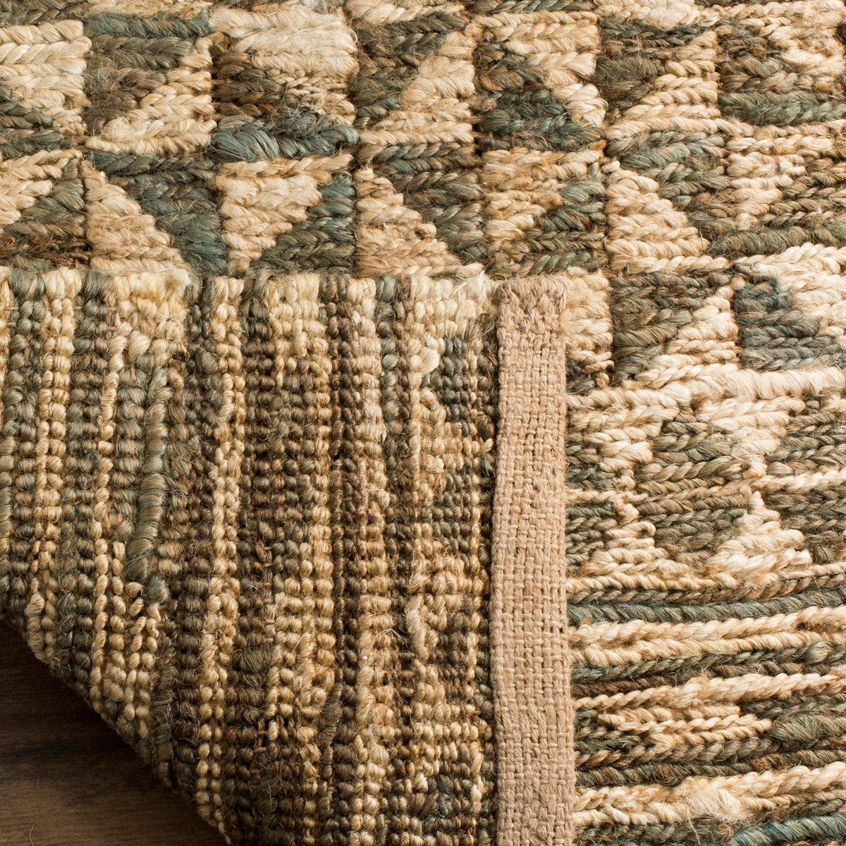 d from Cannabis Sativa (commonly known as the 'true hemp' plant) and is twice washed to soften each yarn before weaving. Safavieh's trained artisans then brush the jute yarn to an even more lustrous sheen before it is hand-knotted into organic floor