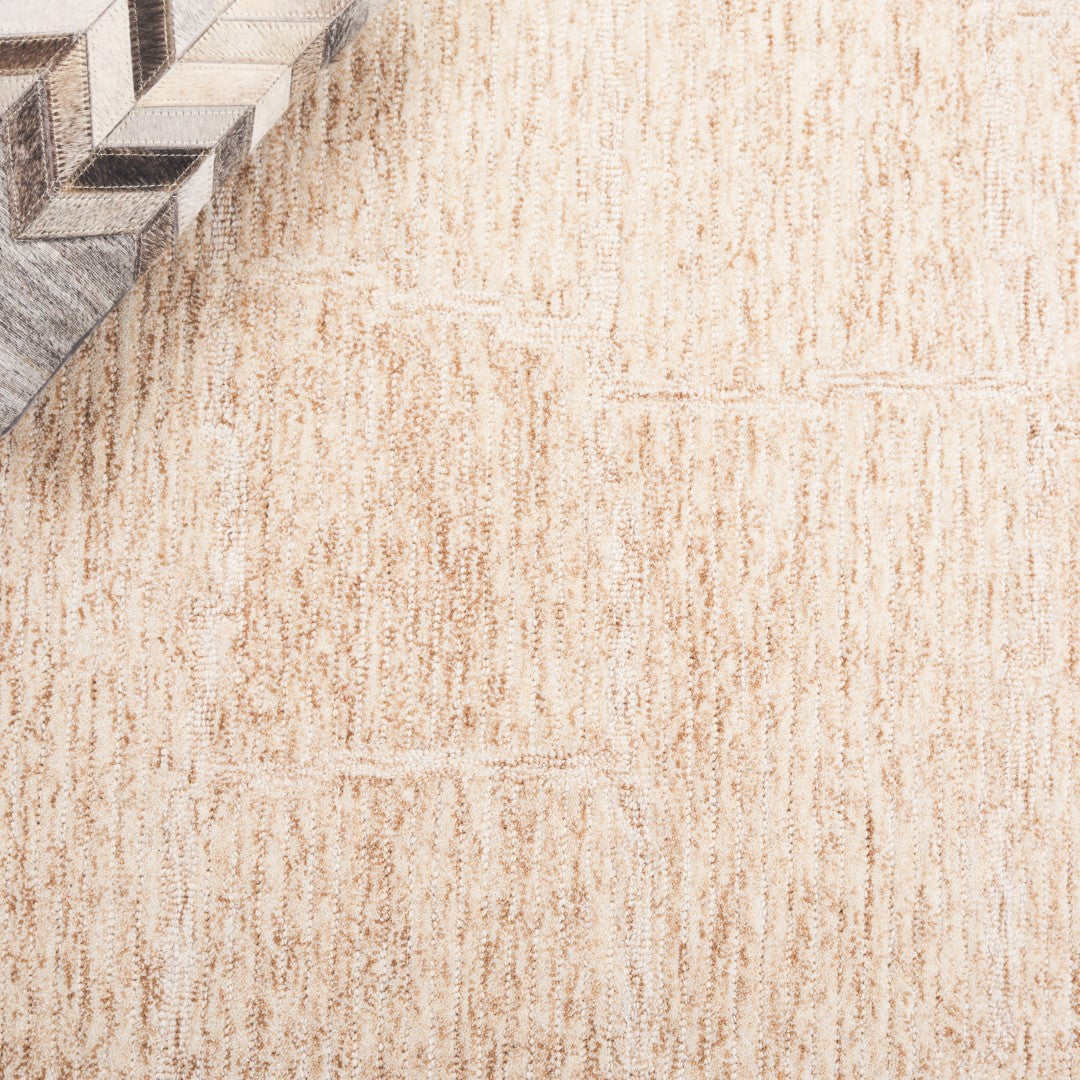 The beauty of this rug is accentuated by a geometric block pattern, which displays a sophisticated and timeless design. The pattern exhibits varying shades and textures within the beige spectrum, delivering depth and visual interest to your floors.