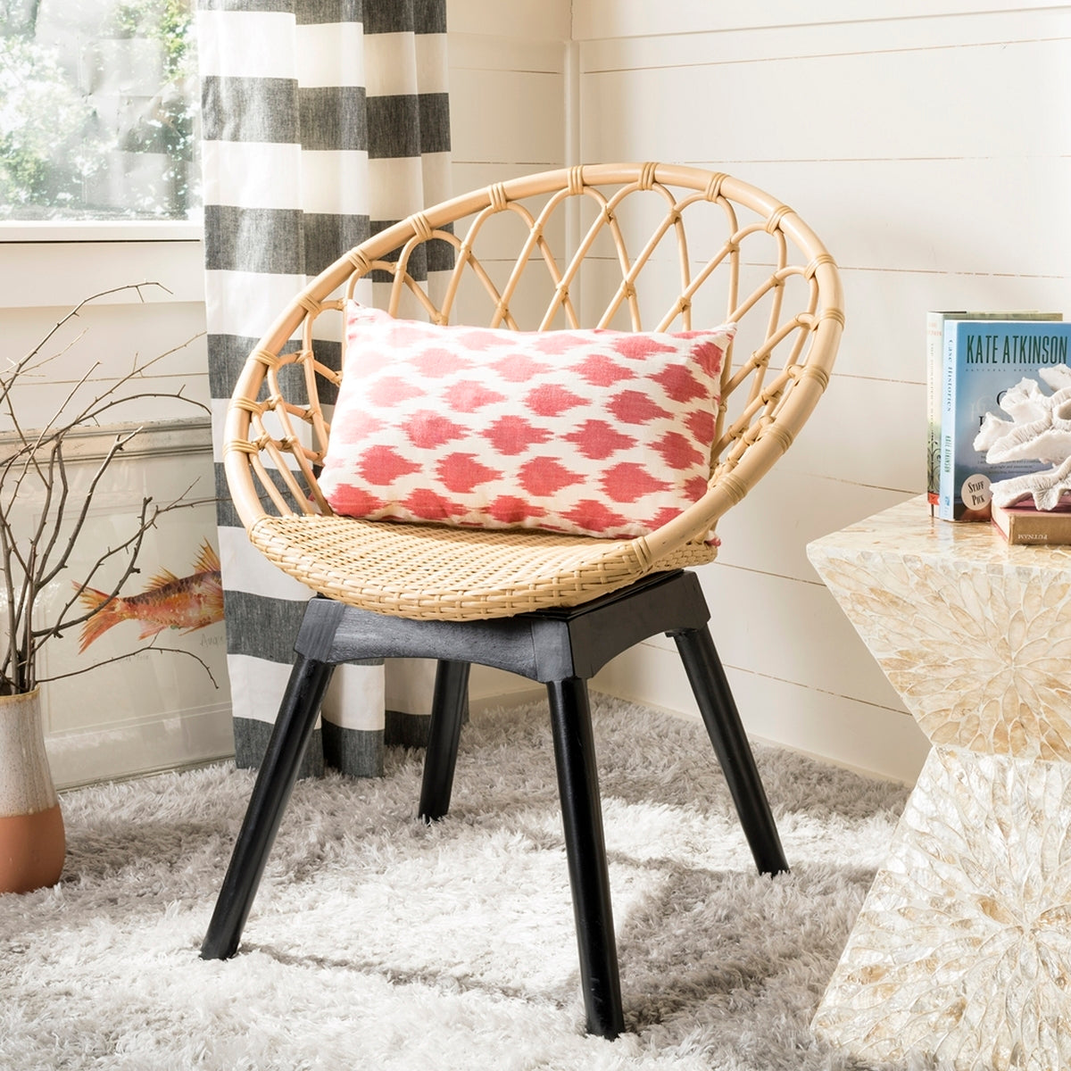 Pillows tend to flatten during transit, but these tips should help you get that pillow into its fluffiest shape quickly! Once unpacked, gently knead the pillow to help loosen the fibers. Throw the pillow in a dryer on a low tumble setting. The most important tip is to include a sock stuffed with a tennis ball to help "beat" the pillow into its fluffy form. Remove from the dryer, and proudly display your new piece of couch art!