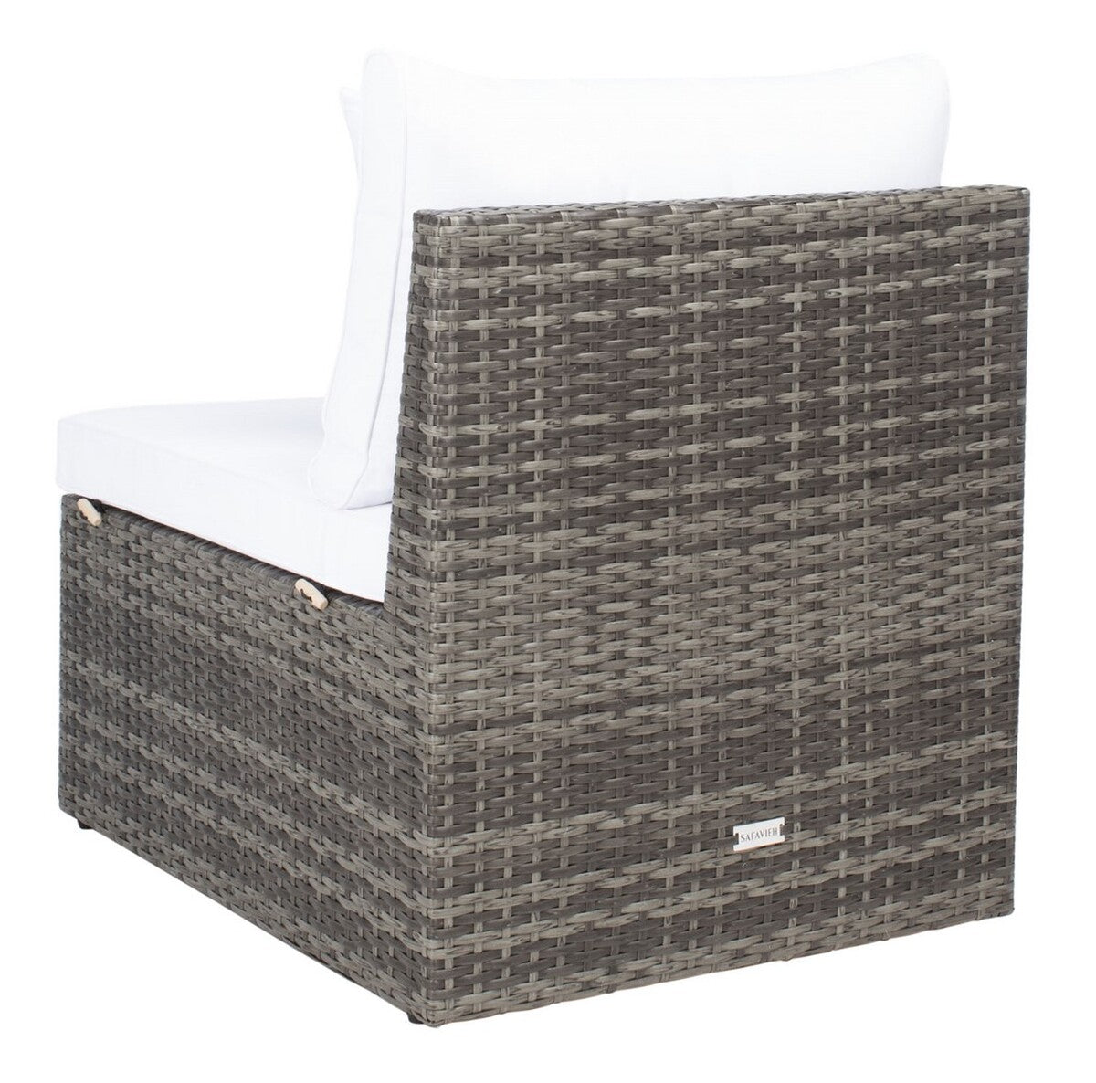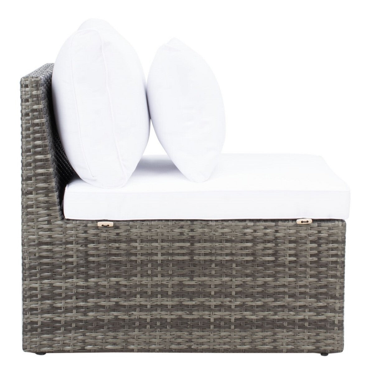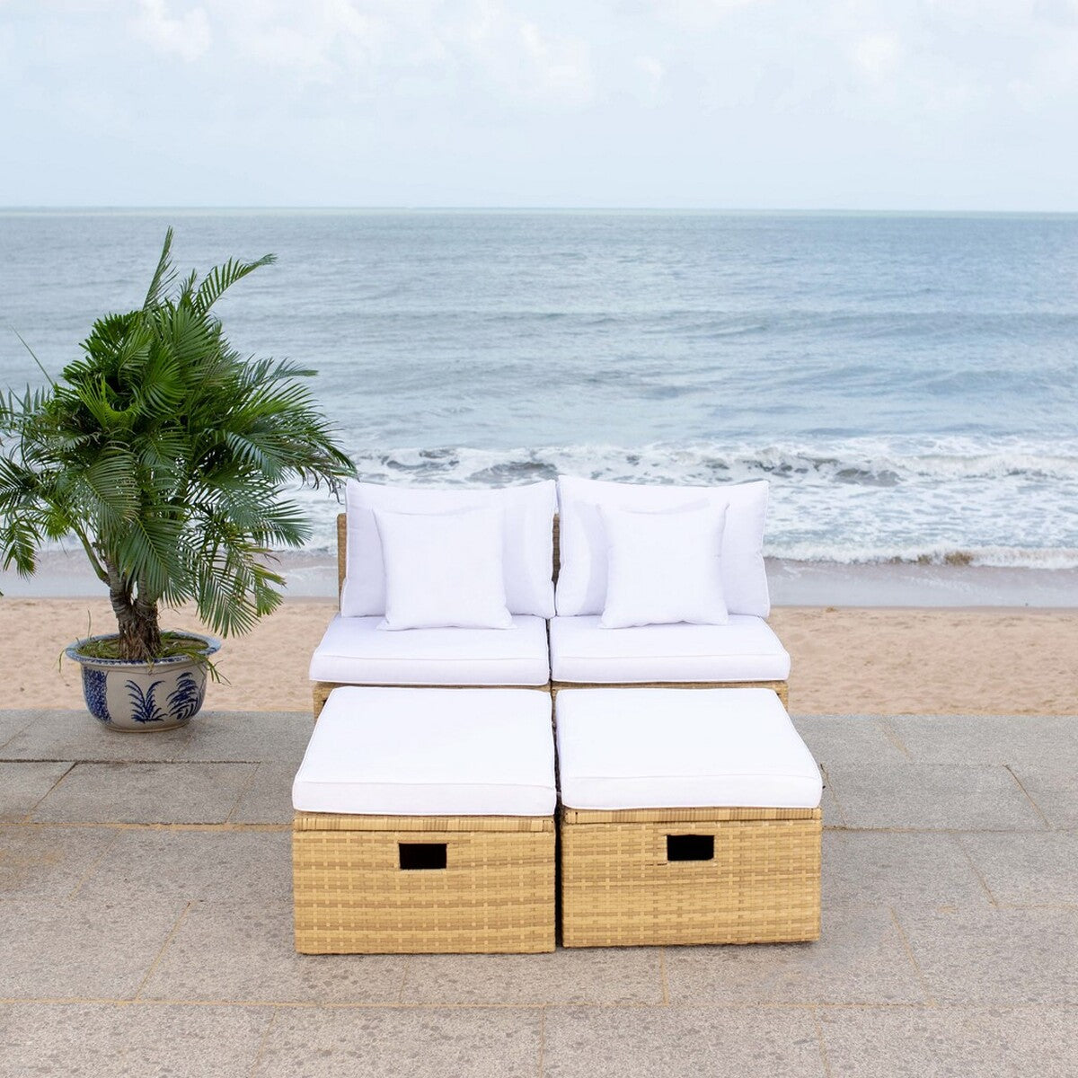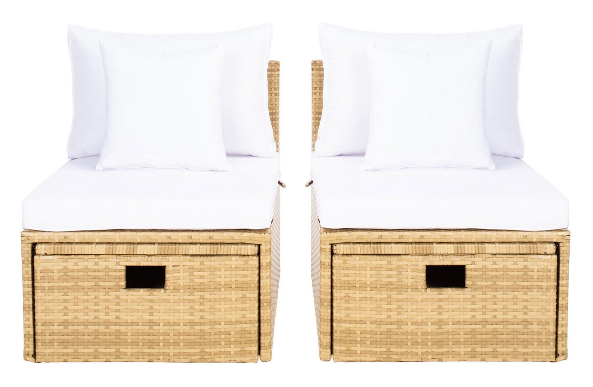 A brilliant blend of style and substance, this contemporary Pramla Set is the ultimate in dynamic duos. Crafted with a texture rich grey frame and plush matching cushions, Pramla includes clever built in storage ottomans for smart and chic sunbathing.