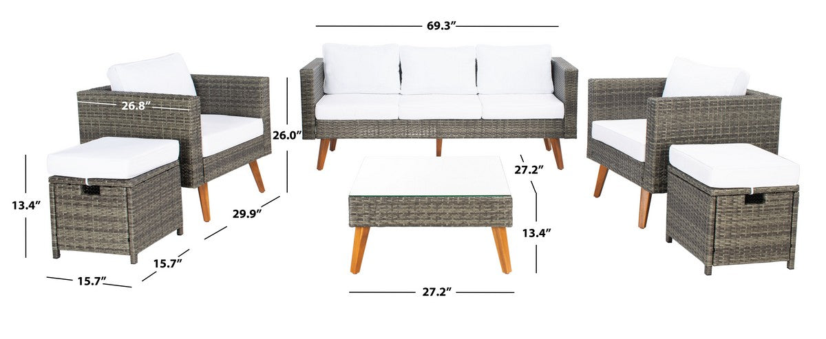 - Full Dimensions [W / D / H]: TABLE: 27.2" x 27.2" x 13.4" BENCH: 69.3" x 26.8" x 26.0" CHAIR: 29.9" x 26.8" x 26.0" STOOL: 15.7" x 15.7" x 13.4"