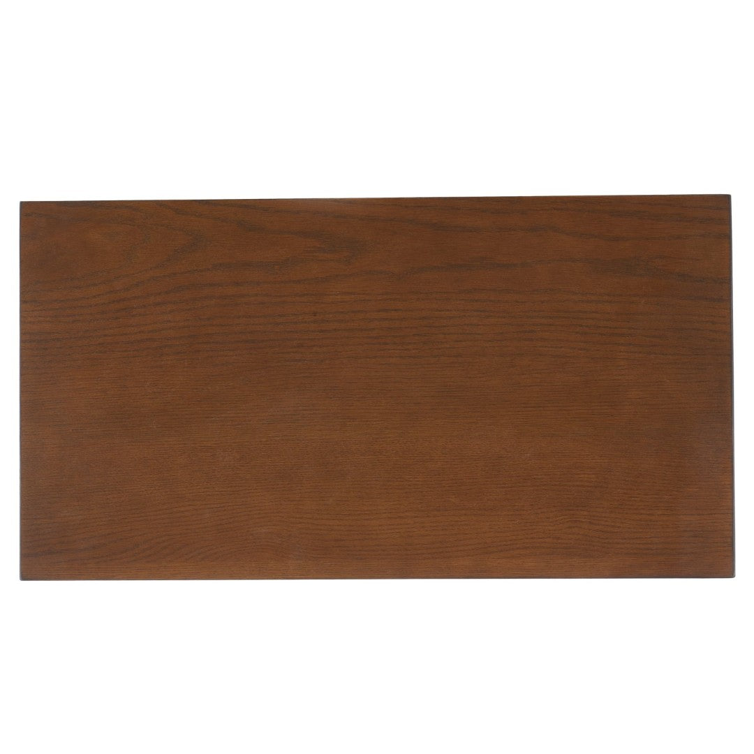 - Finish & Hardware: Medium Oak Wood Veneer Complemented By Antique Gold Drawer Knobs For An Elevated Aesthetic