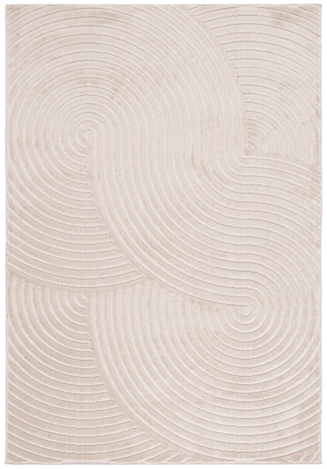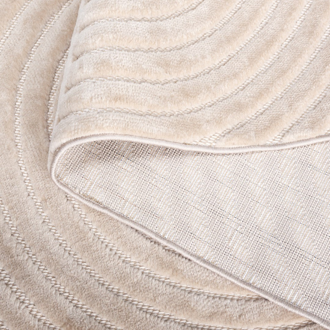 The modern elegance of this rug is emphasized by its serene beige color palette, making it an ideal addition to any room seeking a touch of sophistication. The design showcases a mesmerizing pattern of concentric circles, creating a sense of movement and depth that will enhance the aesthetic of your space.
