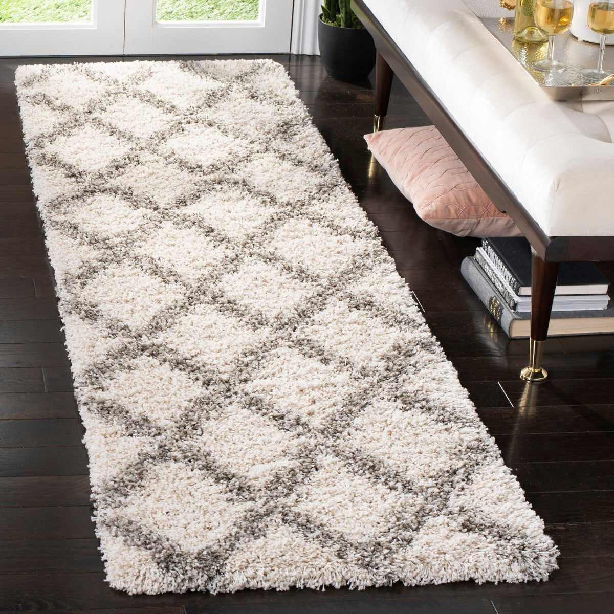 ttern that is set into the lush grey pile of this luxurious shag. Soft underfoot and pleasing to all senses for an easy-care, durable carpet perfectly styled for metro-mod d'cor or to add a stylish finish to classy country home furnishings.
