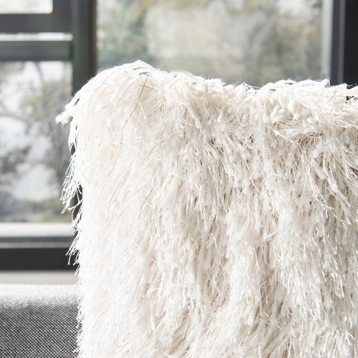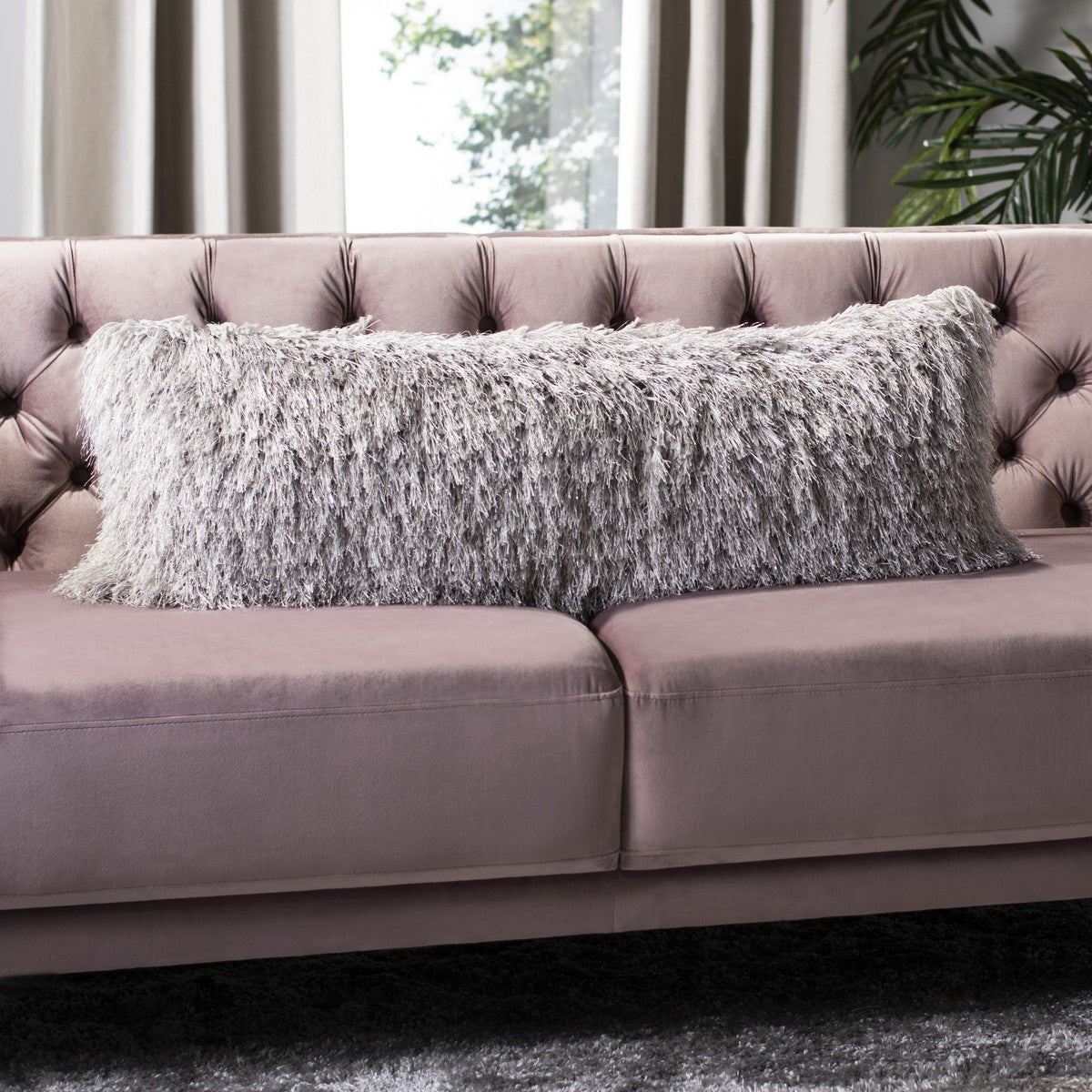 Pillows tend to flatten during transit, but these tips should help you get that pillow into its fluffiest shape quickly! Once unpacked, gently knead the pillow to help loosen the fibers. Throw the pillow in a dryer on a low tumble setting. The most important tip is to include a sock stuffed with a tennis ball to help "beat" the pillow into its fluffy form. Remove from the dryer, and proudly display your new piece of couch art!