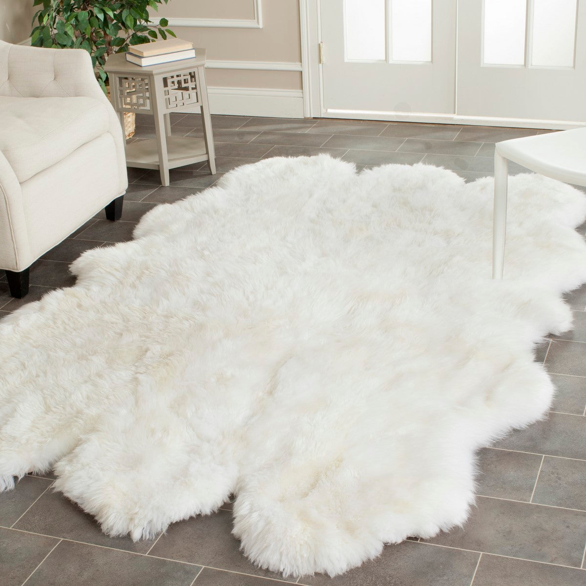 ts the rug from spills. Long-wearing, versatile sheepskin rugs are favored by interior designers as the perfect complement to traditional, transitional and contemporary decorating themes. These rugs are made from 100% natural hides so slight variatio