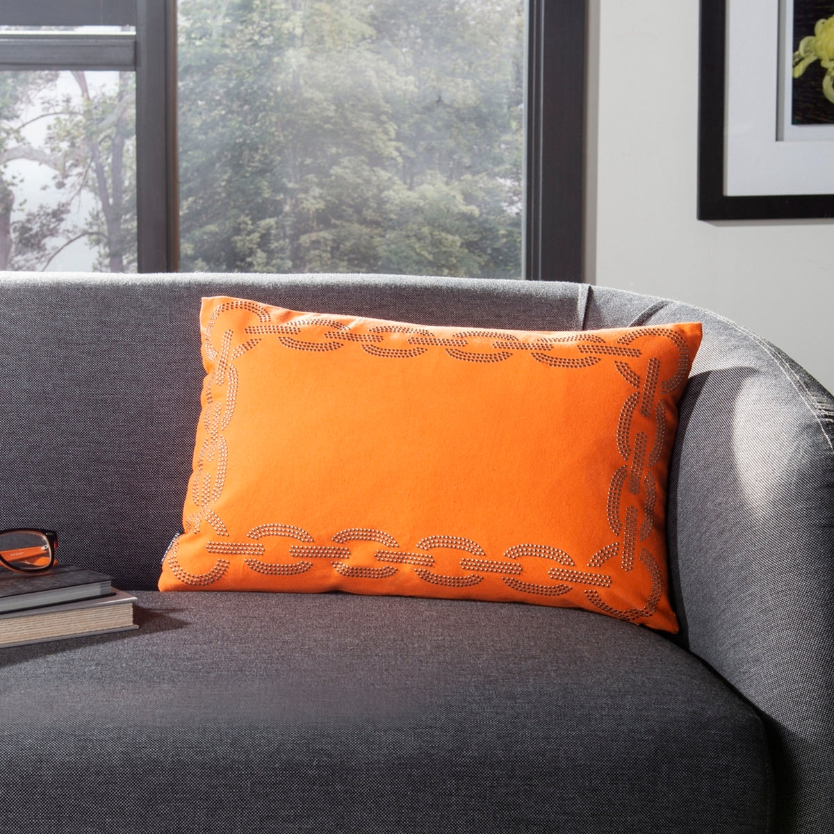 Pillows tend to flatten during transit, but these tips should help you get that pillow into its fluffiest shape quickly! Once unpacked, gently knead the pillow to help loosen the fibers. Throw the pillow in a dryer on a low tumble setting. The most important tip is to include a sock stuffed with a tennis ball to help "beat" the pillow into its fluffy form. Remove from the dryer, and proudly display your new piece of couch art!
