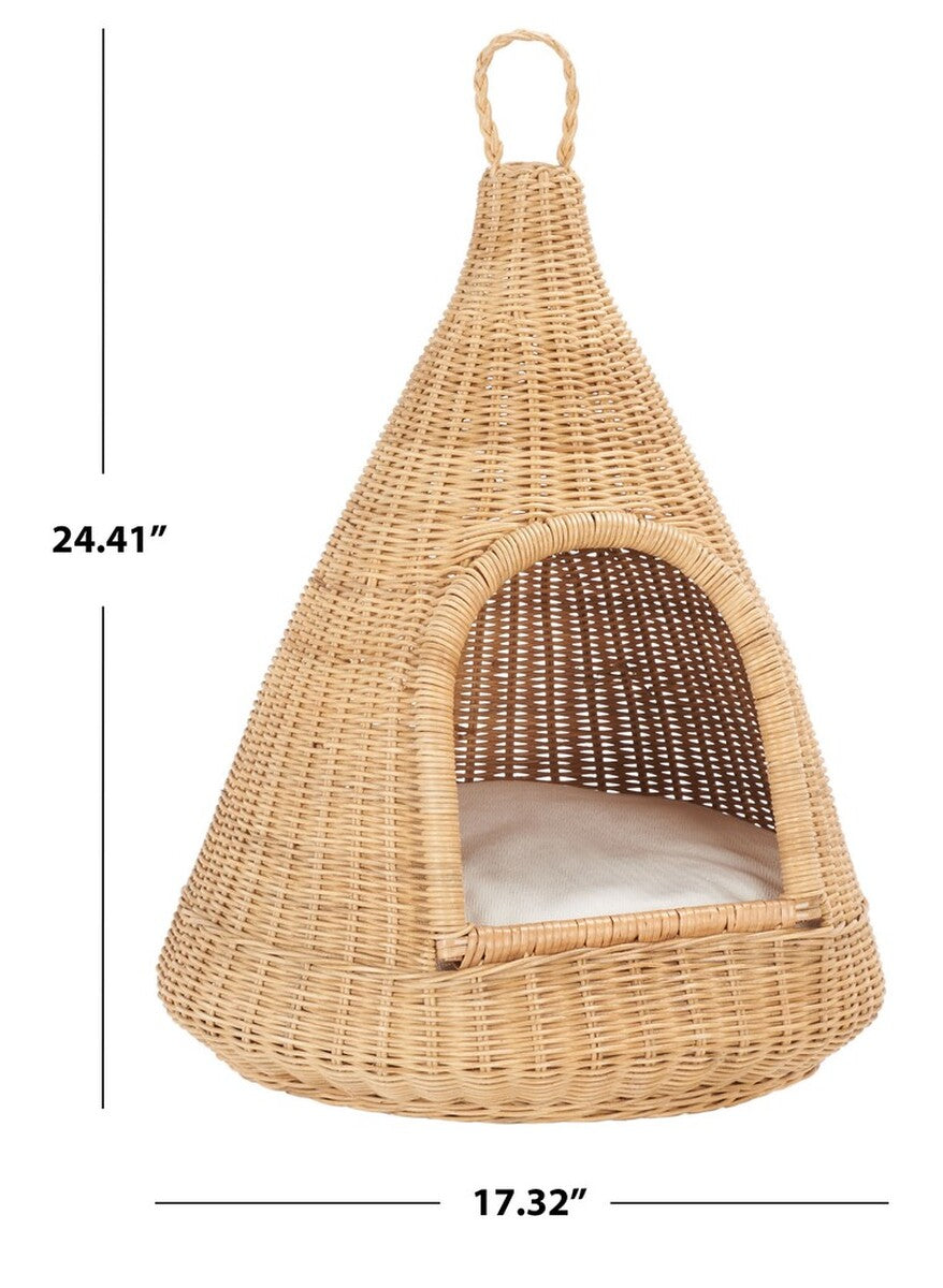 We all know the cat is the one that should have the deed to your home, so why not give your feline the same amount of style and luxury as the rest of your décor? This Tifa Cat Bed offers endless comfort with a white-cotton blend cushion, and its natural honey rattan is effortlessly chic. Tifa can be hung for your cat’s ever-changing moods.