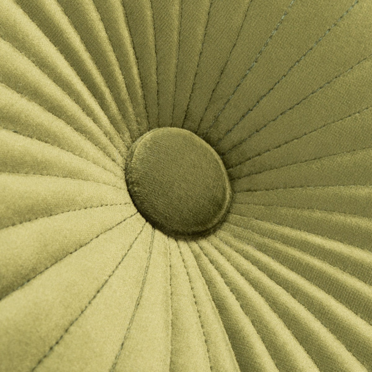 This Vallory Pillow awakens any room with a bold splash of color. Vallory’s leaf green fabric is ultra-smooth to the touch, and its button tufted details beautifully enhance its circular silhouette.