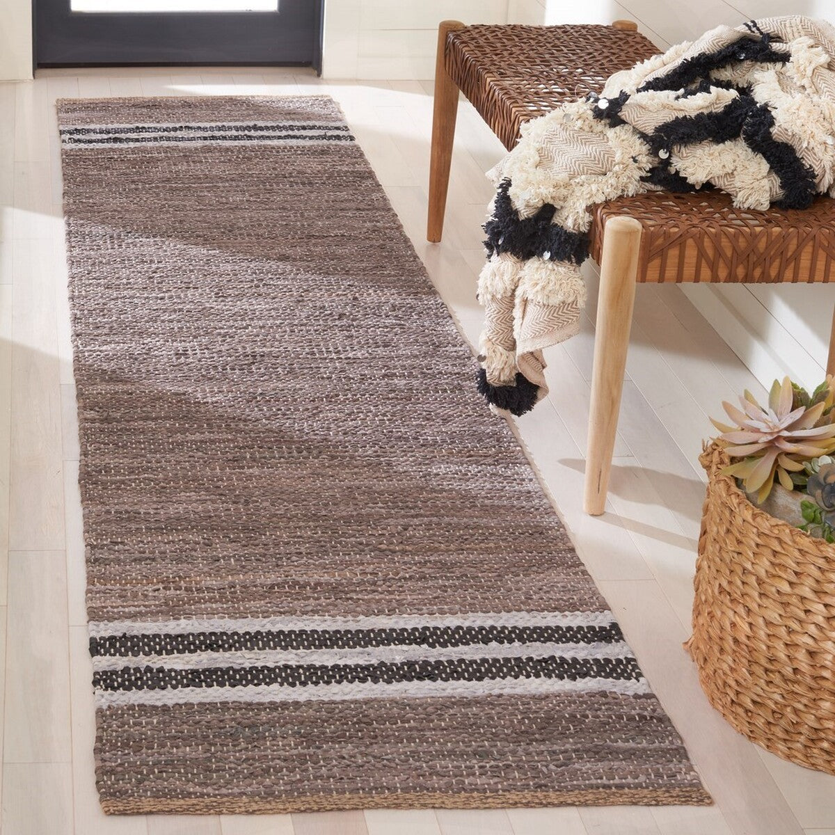- FIBER/FINISH: 85% Leather, 10% Cotton, 5% Jute