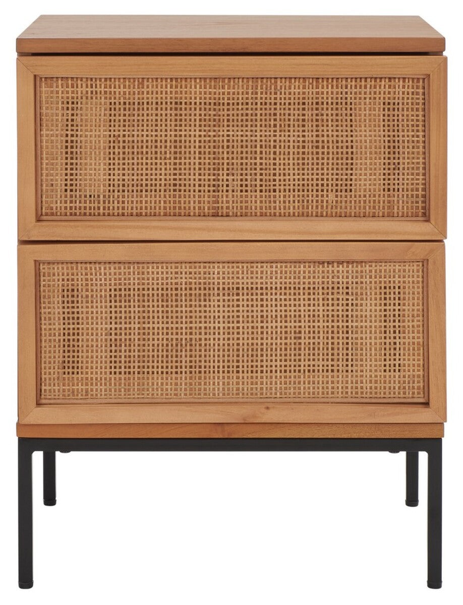 An icon of modern coastal chic, this Zadie Nightstand refreshes any contemporary bedroom. Zadie’s black Parson’s-inspired frame is beautifully offset by the organically woven natural rattan details on its two spacious drawers, creating compelling visual intrigue.
