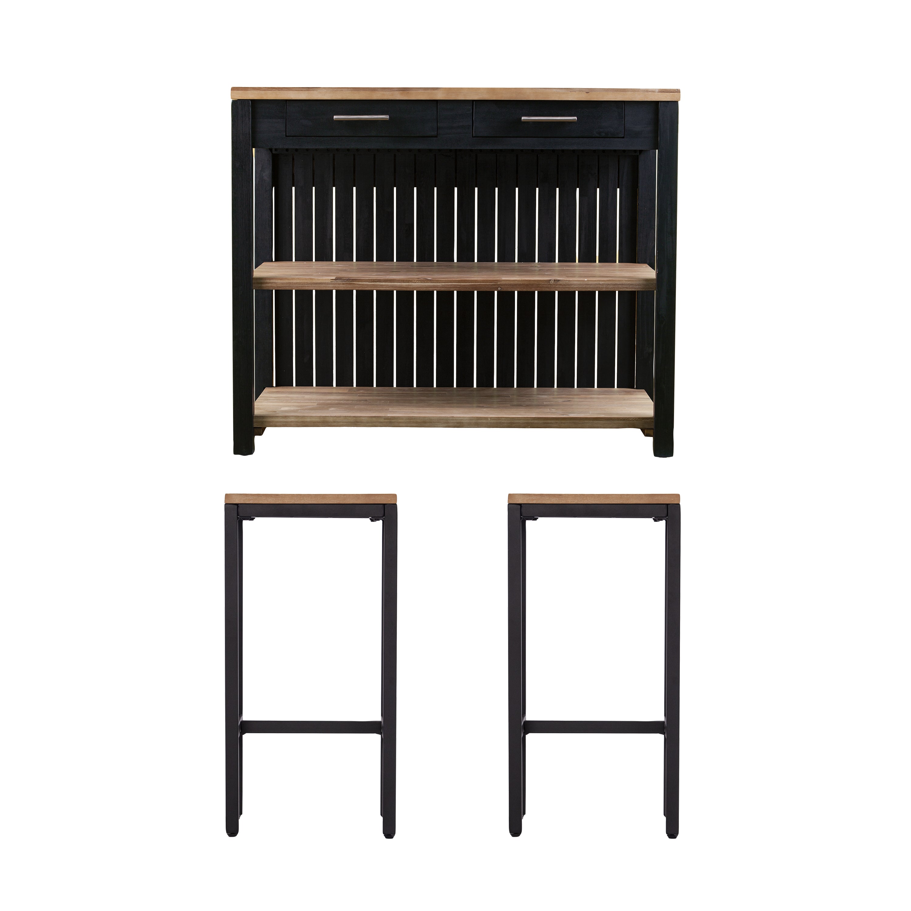 - Feature 1: Solid wood kitchen island w/ storage and pair of counter-height stools