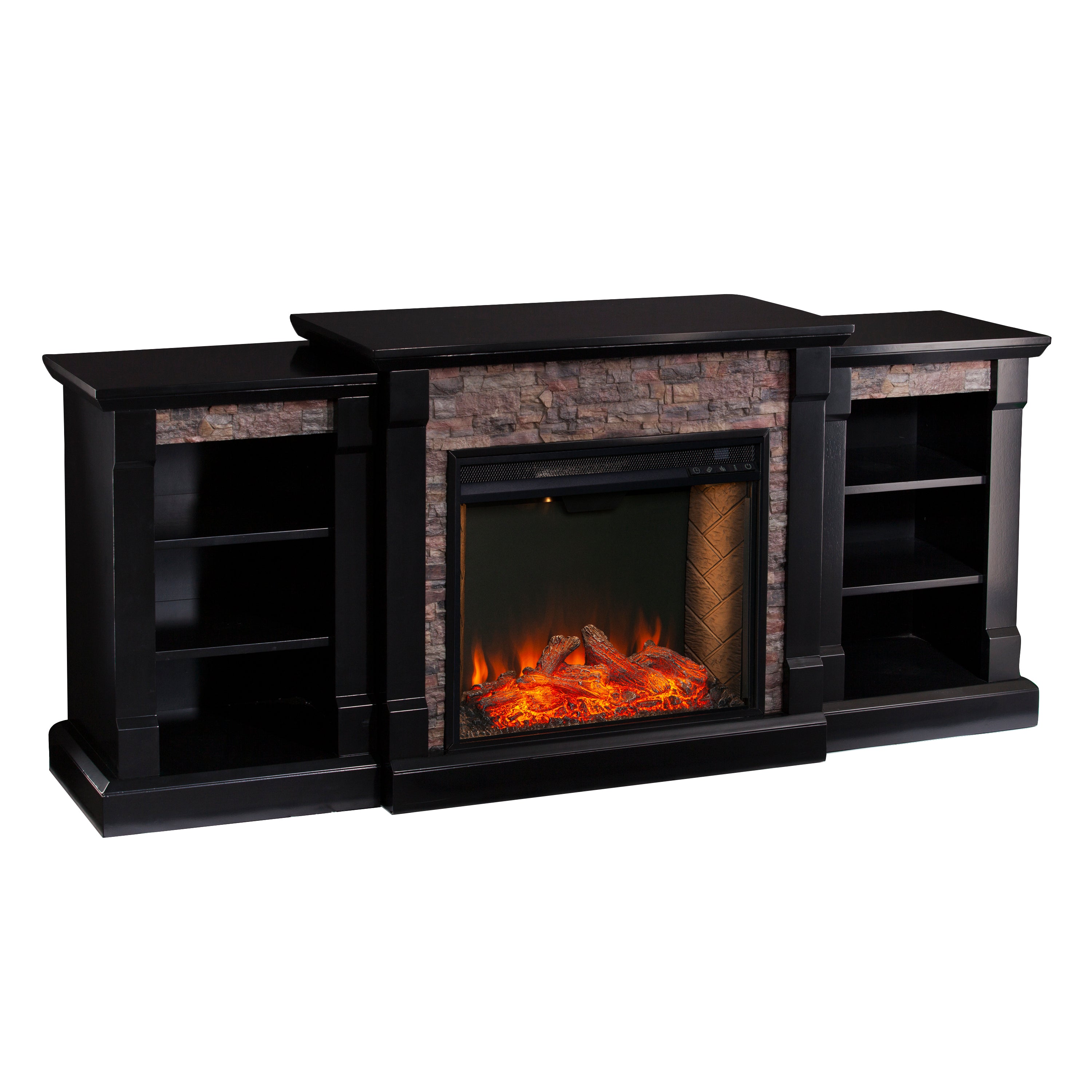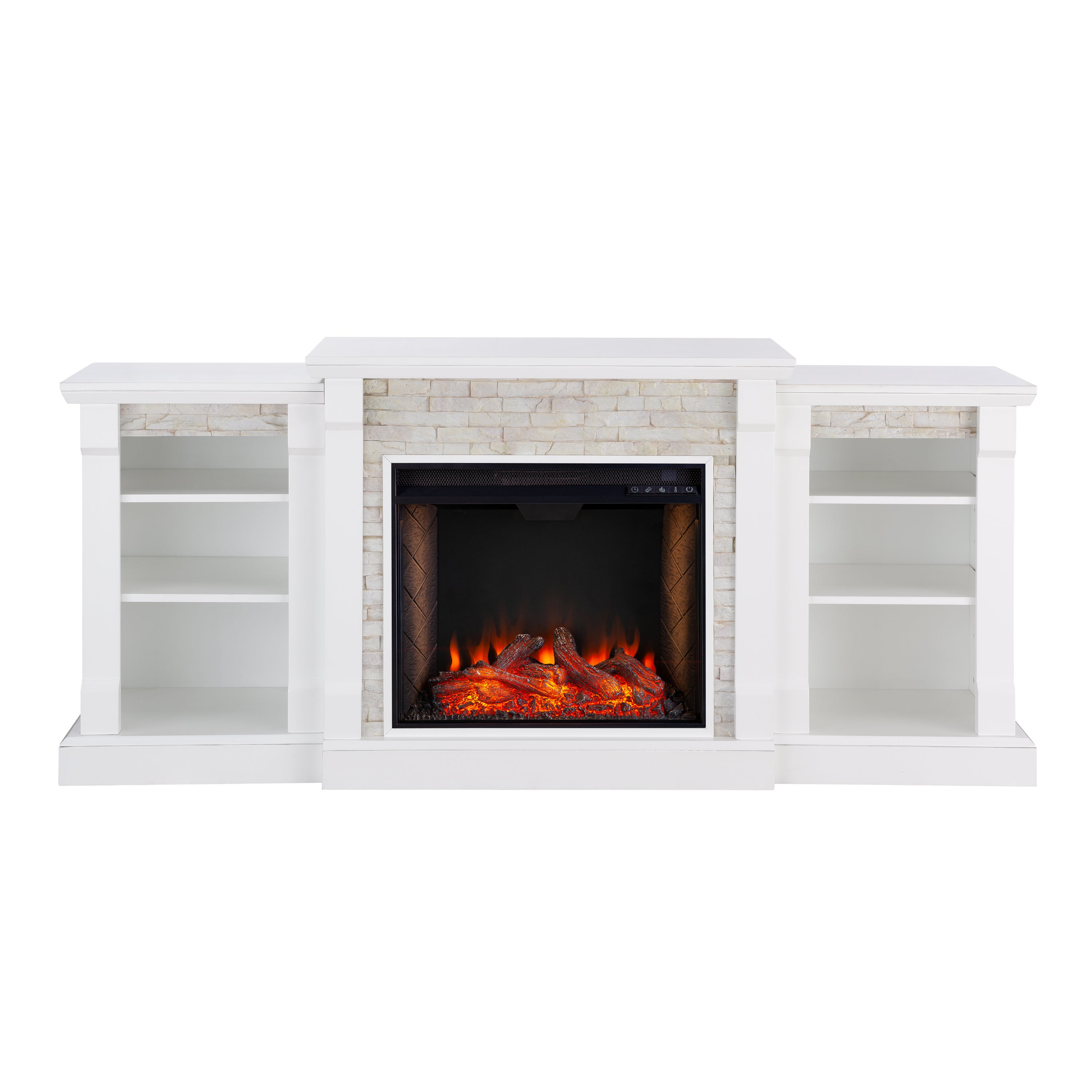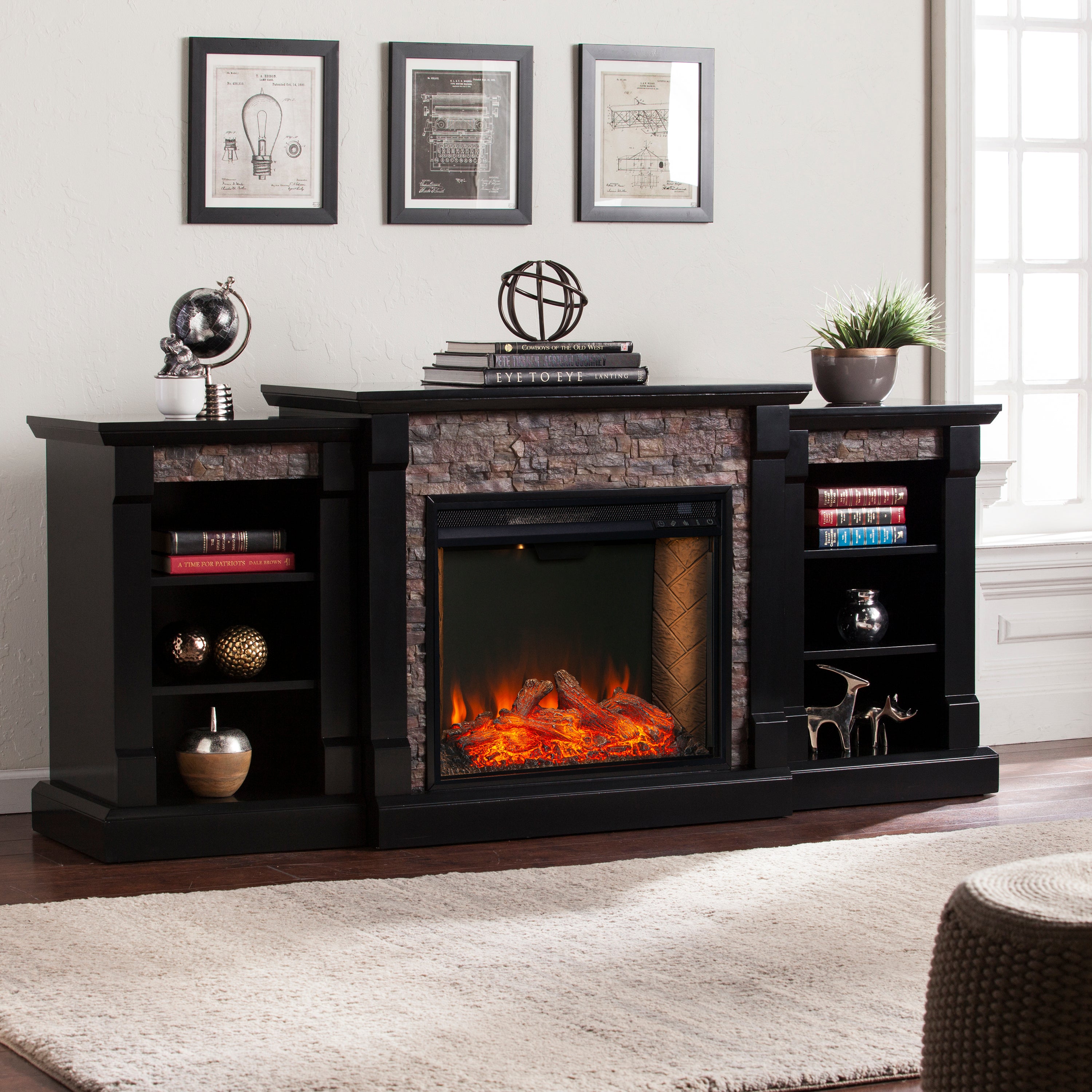 - Feature 1: Low profile bookcase fireplace w/ faux stone surround